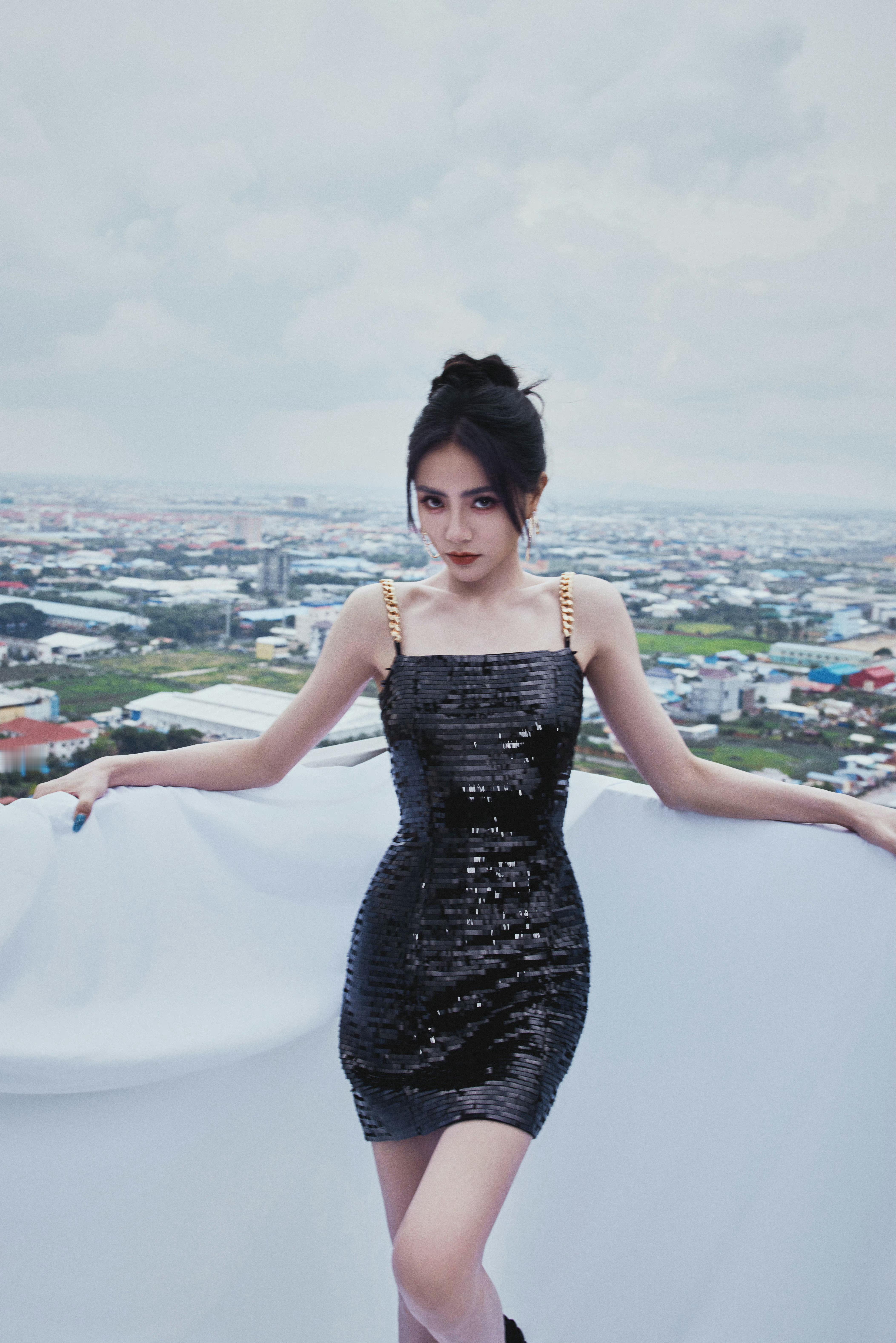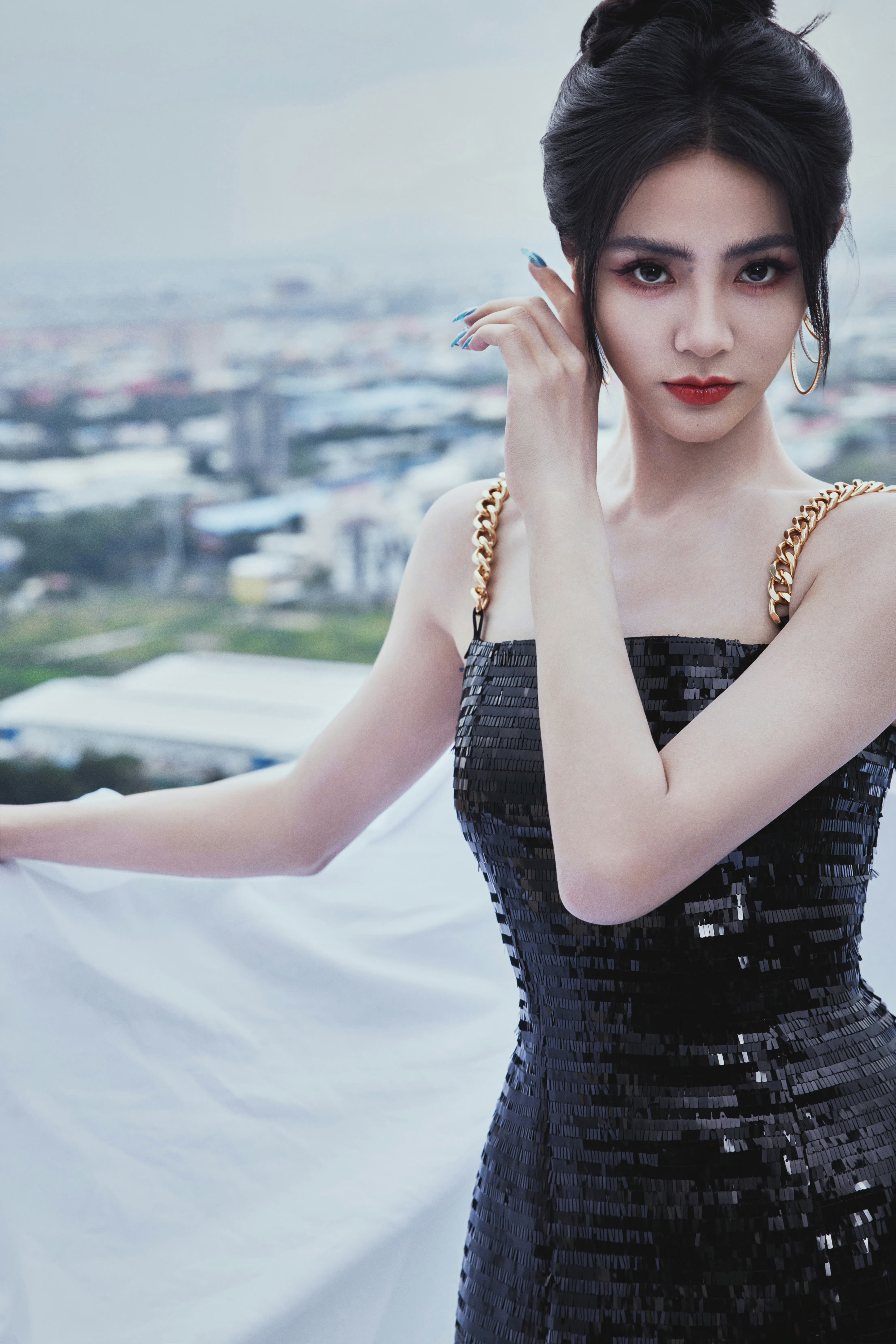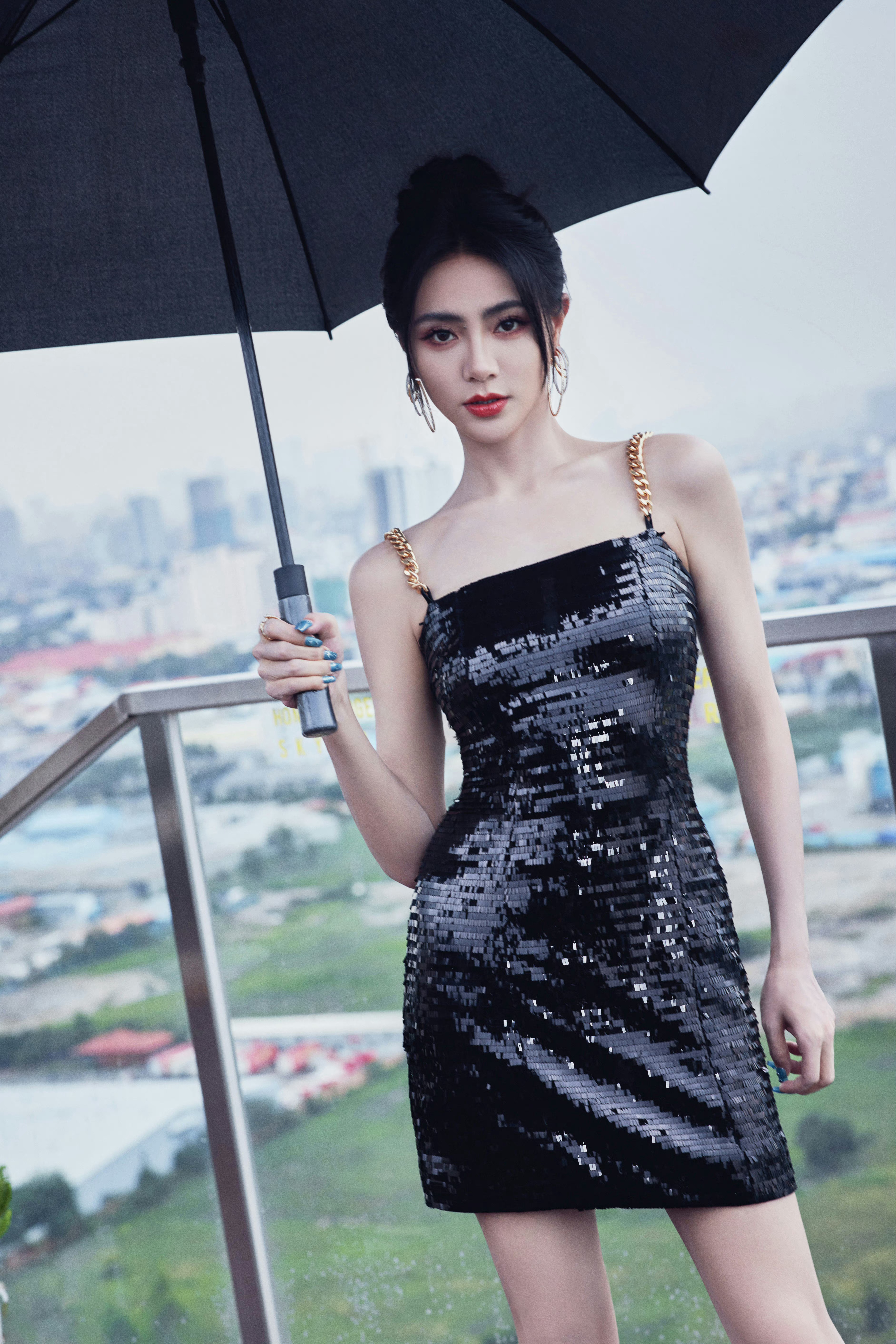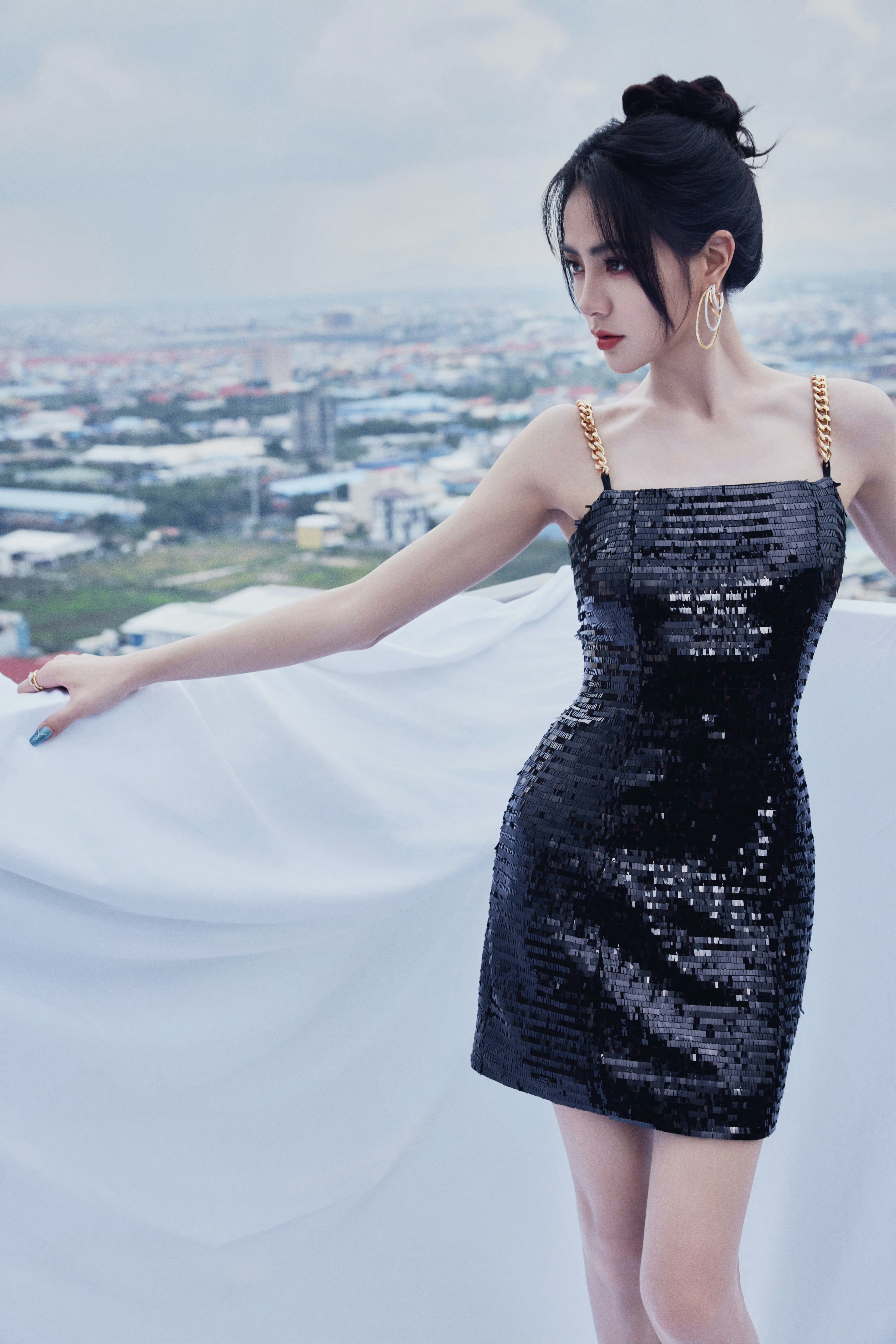 谢可寅,黑色吊带裙,精致优雅轻盈曼妙
