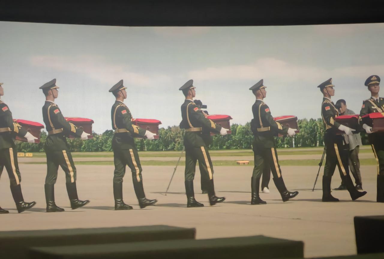 和平像个小孩子,迟早要回到你的怀抱。 一《志愿军∽浴血和平》林月明 这是陈凯歌导演的电影《志愿军∽浴血和平》中的翻译队队长林月明说的。的确如此,1953年7月27日,中国、朝鲜和美国为首的八国联军签订了板门店停战协定。签字的那一瞬间。中国军队和朝鲜军队及联合军都欢天喜地庆祝这一历史时刻。但这个过程来之不易,将近20万中国志愿军牺牲在朝鲜战场上,跨过鸭绿江,保家卫国,这是中国军人震耳欲聋的口号声。《志愿军∽浴血和平》志愿军系列电影的第三部,也是国庆献礼大片。这部片子。反映的是志愿军在开城。上甘岭战役的场景双线作战,一条线是志愿军在上甘岭进行拉锯,另一条战线为乔冠华为代表的外交人员与美国、南韩谈判的故事。电影中的主角是翻译队队长林月明和战士李晓,而战场上有牺牲的孙醒、黄继光,及功勋工程师、张孝文等,他们大无畏的爱国主义牺牲精神感动了所有的人。尤其身患绝症的林月明和以血肉之躯堵枪眼的黄继光让观影的人们潸然泪下。当然了,战争片主要以宏大的主题、完美的叙事和激烈的枪战、空袭、炮战、坦克战吸引着观众眼光。电影的最后阶段。时光穿越到了21世纪20年代的现在,国家将志愿军烈士的遗骸从韩国接回中国,作为志愿军老兵的李晓寻找自己父亲的遗骸,几位90多岁的老兵和烈士后人怀抱着亲人的遗像,迎接英雄们回家,这一震撼场面再一次让人泪目。影片中。中国志愿军与中。联合军作战遇到了各种困难,如修复炸毁的铁轨,翻译重要的文件,抢回阵地的激烈战斗,美国人的狡猾、谈判桌上的出尔反尔等。 整整72年过去了,人民不会忘记,国家不会忘记那些牺牲在异国他乡的十几万志愿军战士。但中国人更不应该忘记活着的志愿军和他们生存的现状,除了给他们容易。国家和政府更应该关心他们当下的现实需要。不忘历史之痛,珍惜和平的每一天,但是当国家和人民生命受到威胁,相信冲上去的依然是千千万万伟大的中国军人。我相信在两个多小时的观影时间里,无数人的内心受到洗礼,灵魂受到拷问,除了感动落泪,还有与时俱进的自我救赎和觉醒。 #祖国的和平# #绽放志愿军# #为了和平电影#