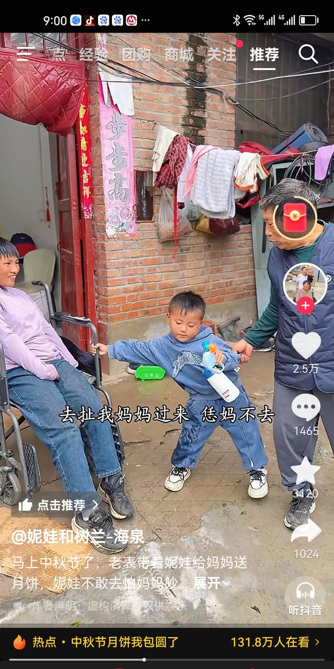 泥娃应该叫福娃,看儿子三行多爱她! 过节了,树兰准备带着泥娃和三行去看看岳父岳母。可是,泥娃不知道哪里不得劲,耍上脾气不去了。树兰将计就计,让她看家,领着三行就往大门口走。 懂事是三行,操着一口普通话,过来劝妈妈。泥娃还是硬挺不去。三行跟着爸爸往大门外走,突然,三行停下来,对着爸爸说:“停下,叫我妈妈去”,说着,自己跑回来,把妈妈推了出来。一起上车去姥姥家了。 特殊的家庭,特殊的父母,把3岁的行锻炼的很懂事,平时和爸爸一起饭前摆桌子、凳子,拿碗筷,端菜让爸爸先给妈妈的饭送到桌子上…… 看着视频,感觉泥娃真是有福气,众星捧月,又加上儿子很爱她。应该是名副其实的福娃。 3岁的三行健康、懂事,就是这个特殊家庭的希望。不求三行如何如何出人头地,懂事、勤快,善良,将来就能撑起这个家。是吧?
