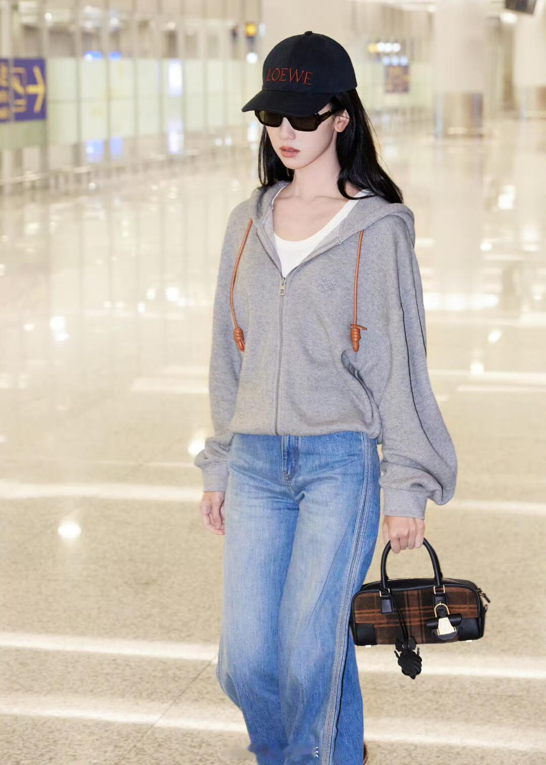 陈都灵巴黎时装周返程,这一身完全就是女大……