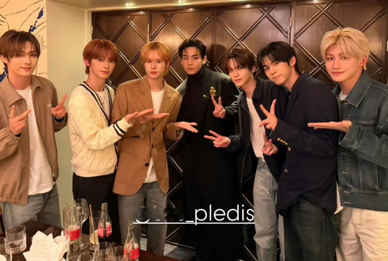 巴黎时装周金泰亨&TWS合照很帅气的三连拍[照相机]