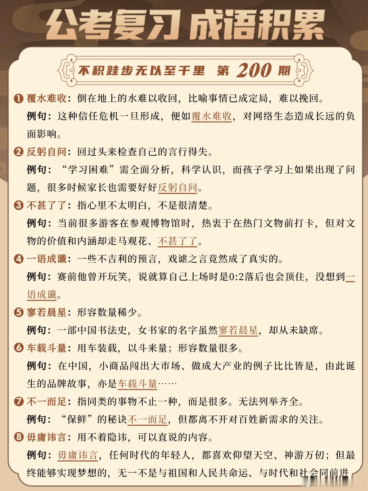 国考成语积累第200天覆水难收 反躬自问 不甚了了 一语成谶寥若晨星 车载斗量