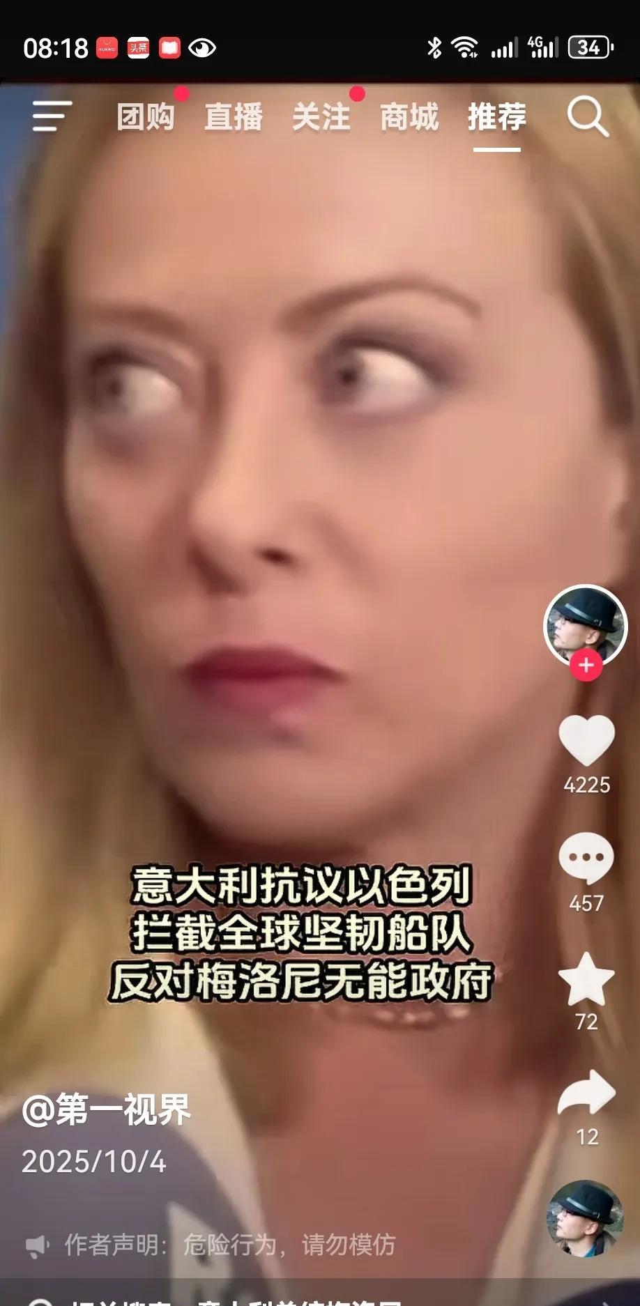 哎!妈呀!意大利又出现超级美丽大画面,大美女梅总理已经引起民众大游行! 意大利在这个时候参与工作立场不坚定,支援加沙的时候,中途当逃兵,当然会引起国内不满情绪和执政理念。 #意大利大游行#