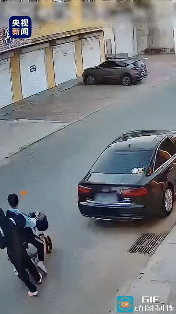 上央视新闻了!一小男孩骑车不慎剐蹭到路边停的一辆奥迪A6,然后跟他一起的小伙伴纷