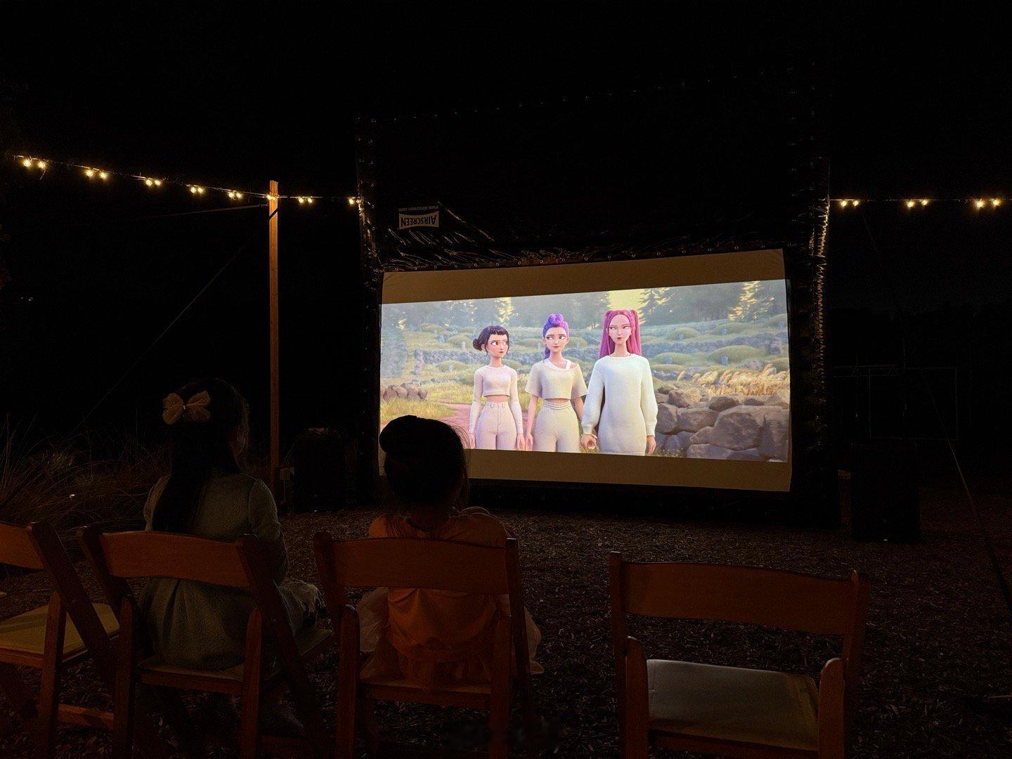 大屏幕放起来KPopDemonHunter。小孩子们就全聚集在一起。边看边