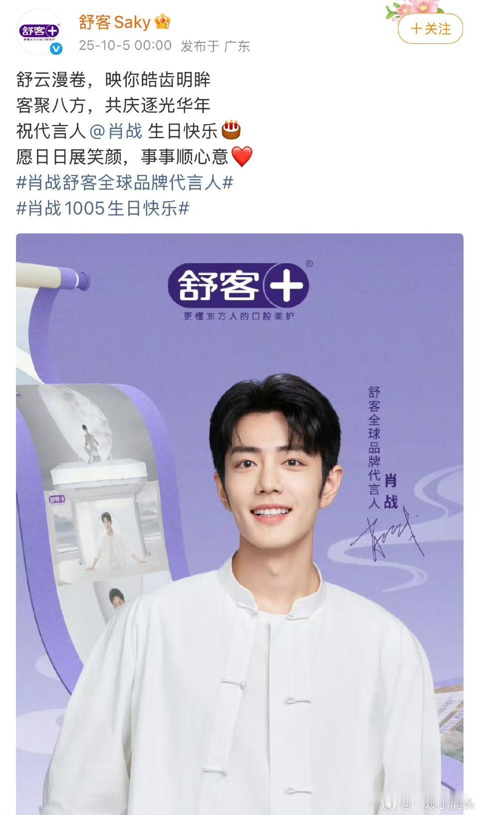 平台和肖战代言品牌集体卡点为肖战送祝福