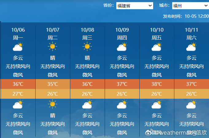 【福州高温】今天不到12时,福州已经出现35℃高温,追平当地最晚高温日纪录。未来高温还会持续,不仅会创最晚高温日纪录,也将打破当地10月最高气温纪录。