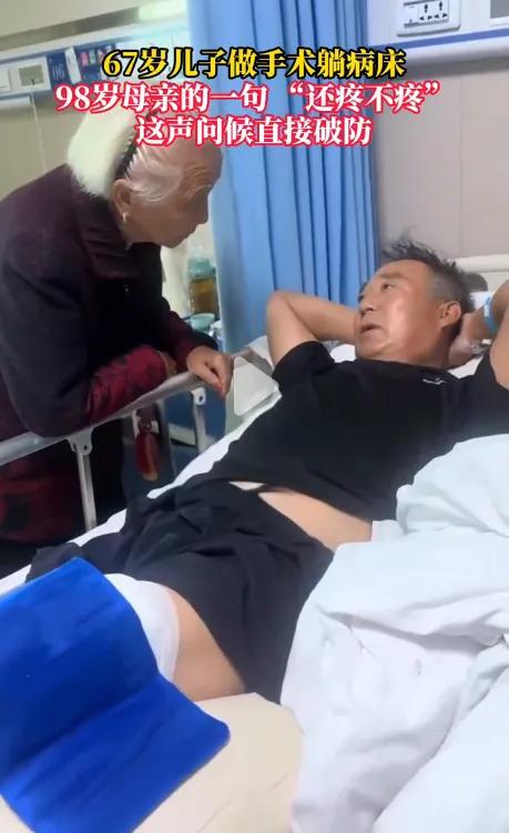 泪目了!病房里那一刻,时间仿佛倒流了。 67岁的他躺在病床上,93岁的老母亲被人推进来,颤抖的手一把抓住他的手,轻轻贴在脸颊:“幺儿,疼不疼?你要好起来。” 就是这么简单一句话,让无数人瞬间破防。评论区有人哽咽:“我爸走的时候快60了,还抱着80岁的老母亲哭。”原来在父母眼里,我们永远都是孩子。 这让我想起另一个故事。生命最后一晚,病重母亲耗尽全力给儿子盖好被子,自己却安静离开。 母爱从来不是轰轰烈烈,而是藏在每一个细节里。 快节奏生活里,我们总忙着追逐远方,却容易忽略身边最珍贵的亲情。看到九旬母亲仍牵挂花甲儿子,才惊觉!父母要的从来不多,只是希望我们平安健康。 别忘了,多回家看看,多陪陪那个永远当你是个宝的人。