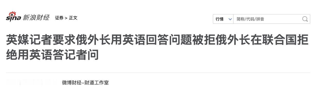 [下雨]俄罗斯确实霸气,俄罗斯外交部长拉夫罗夫在联合国大会发言,拒绝了使用英语回