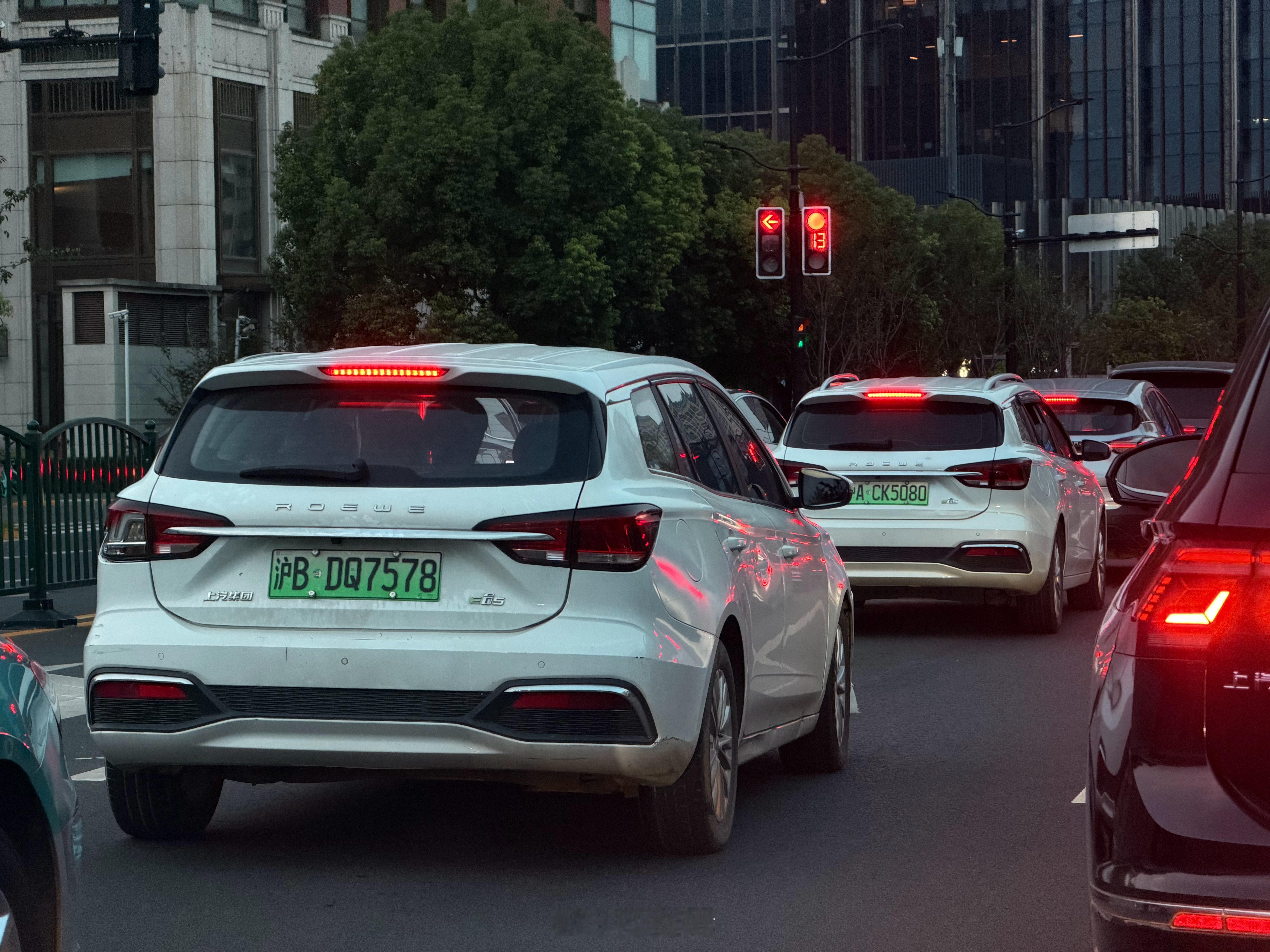 两台荣威ei5前后排着队,我一看刹车灯全是坏的哈哈哈哈,这也太巧了