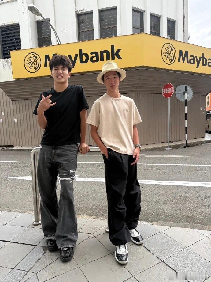 Joe和杨阳洋合照 曹格儿子和杨威儿子合照,两个大帅哥啊!曹格儿子和杨威儿子合照
