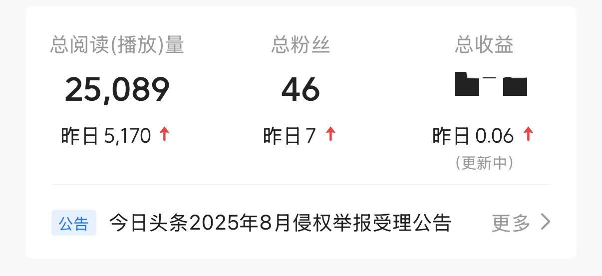 头条你要干什么! 头条你要干什么! 头条你要干什么! 头条你要干什么! 头条你要干什么! 我真的要骂你了! 5000多阅读才6分钱! 你对得起我日日夜夜的互动吗? 你对得起我绞尽脑汁想素材吗? 自从玩了头条 麻将不打了 抖音不刷了 游戏不玩了 你就这样对我