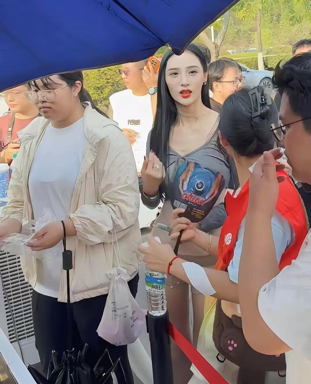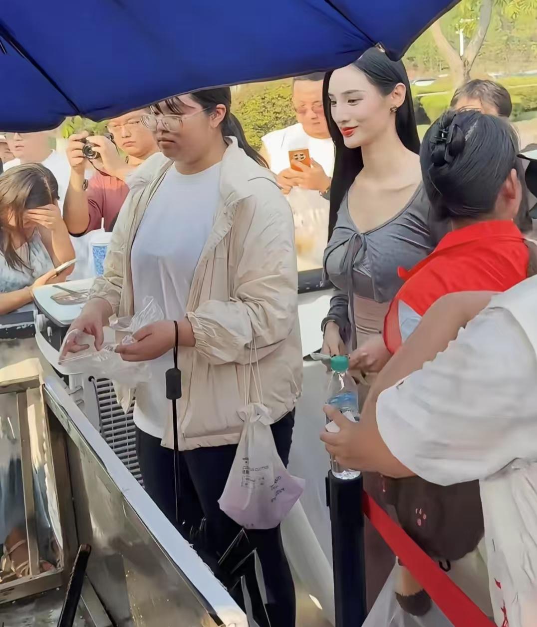 鸡排哥已经火出圈,大明星都纷纷来关顾他的生意。国庆期间,演员兼模特吴春怡来拜访鸡排哥,亲切邀请他一起合影。吴春怡身高174cm,老家也是景德镇人,这次也算是来为老乡助一把力。鸡排哥虽然见过几百人排长队,但这么高挑的大美女站在他边上,还真把他整害羞了。