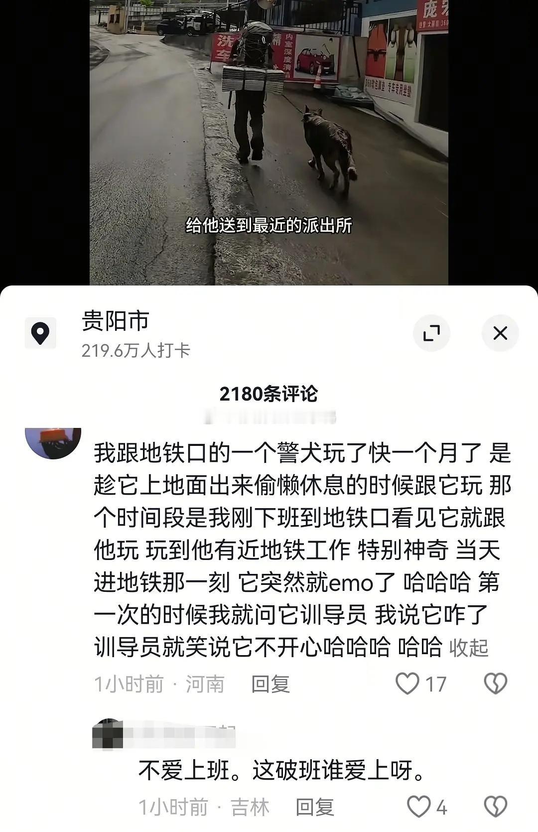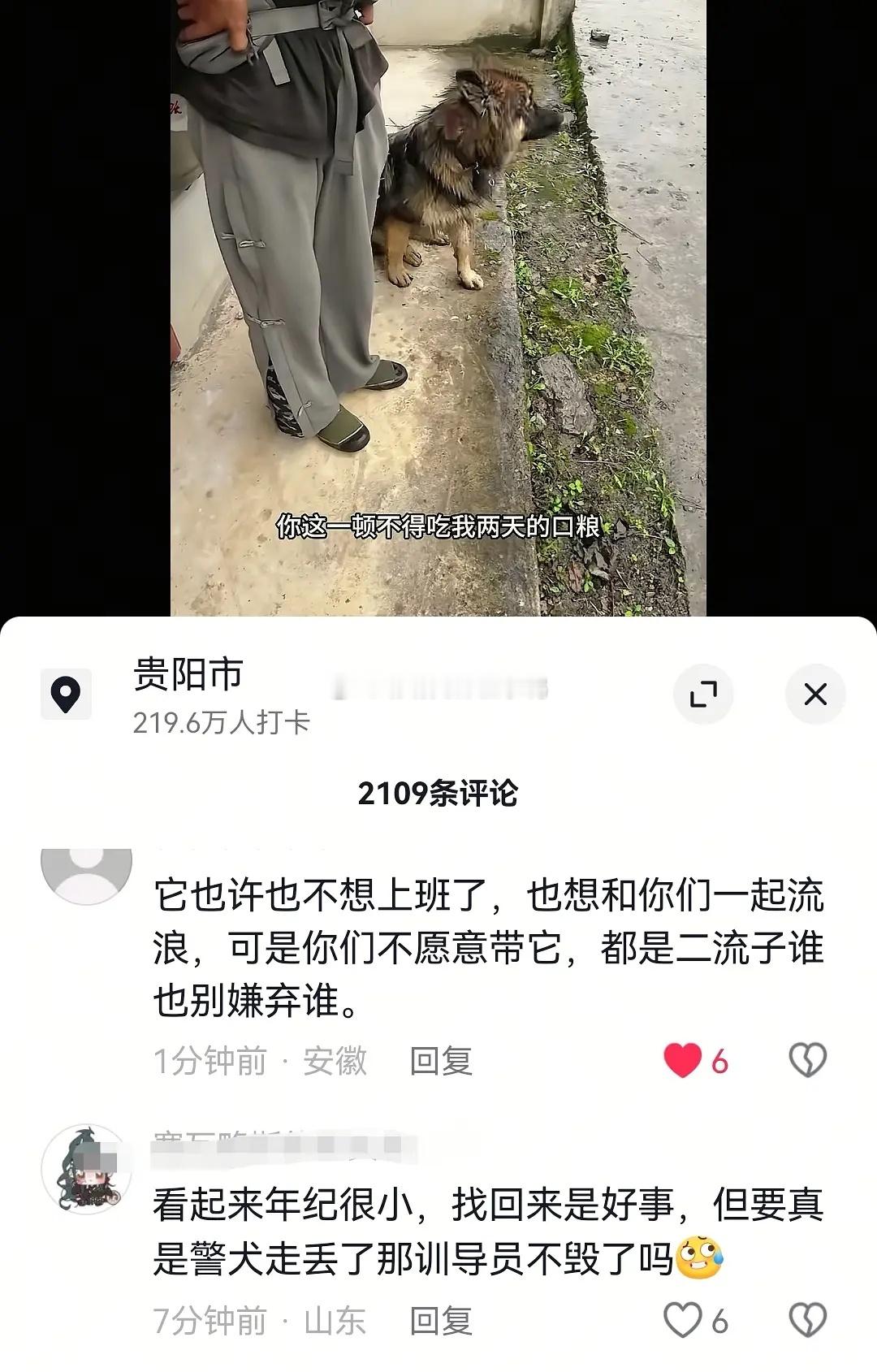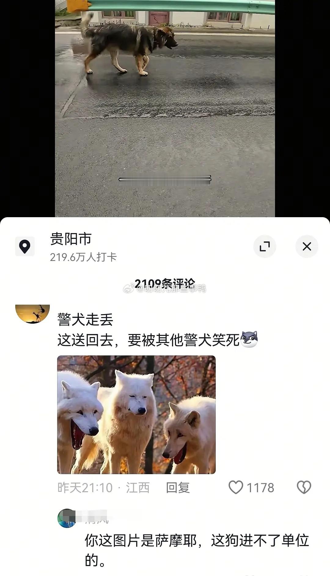 两个徒步的人遇到了一只走丢的警犬。感觉这个🐶不是走丢的,是自己跑出来的。工作肯定是反狗性的,警犬都不想上班😅😅