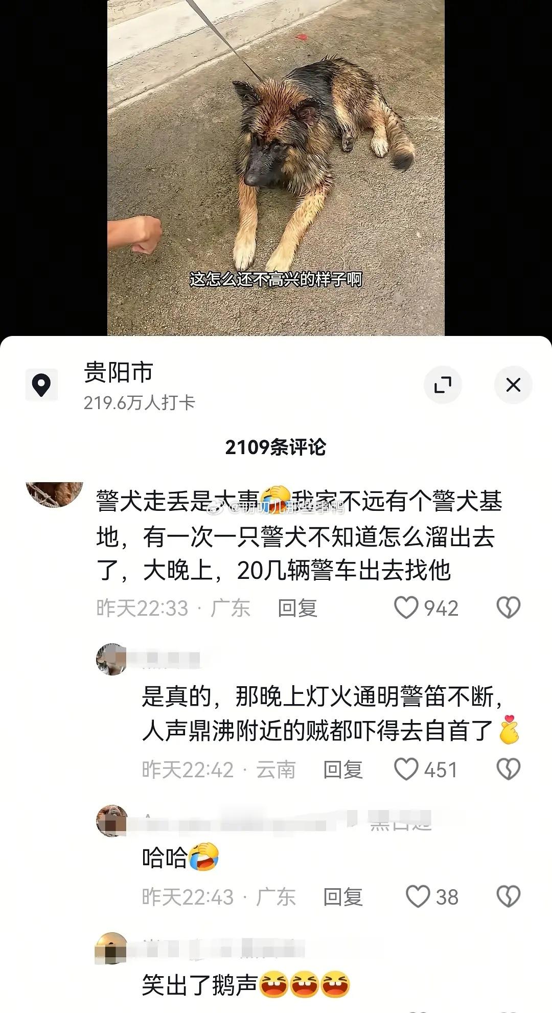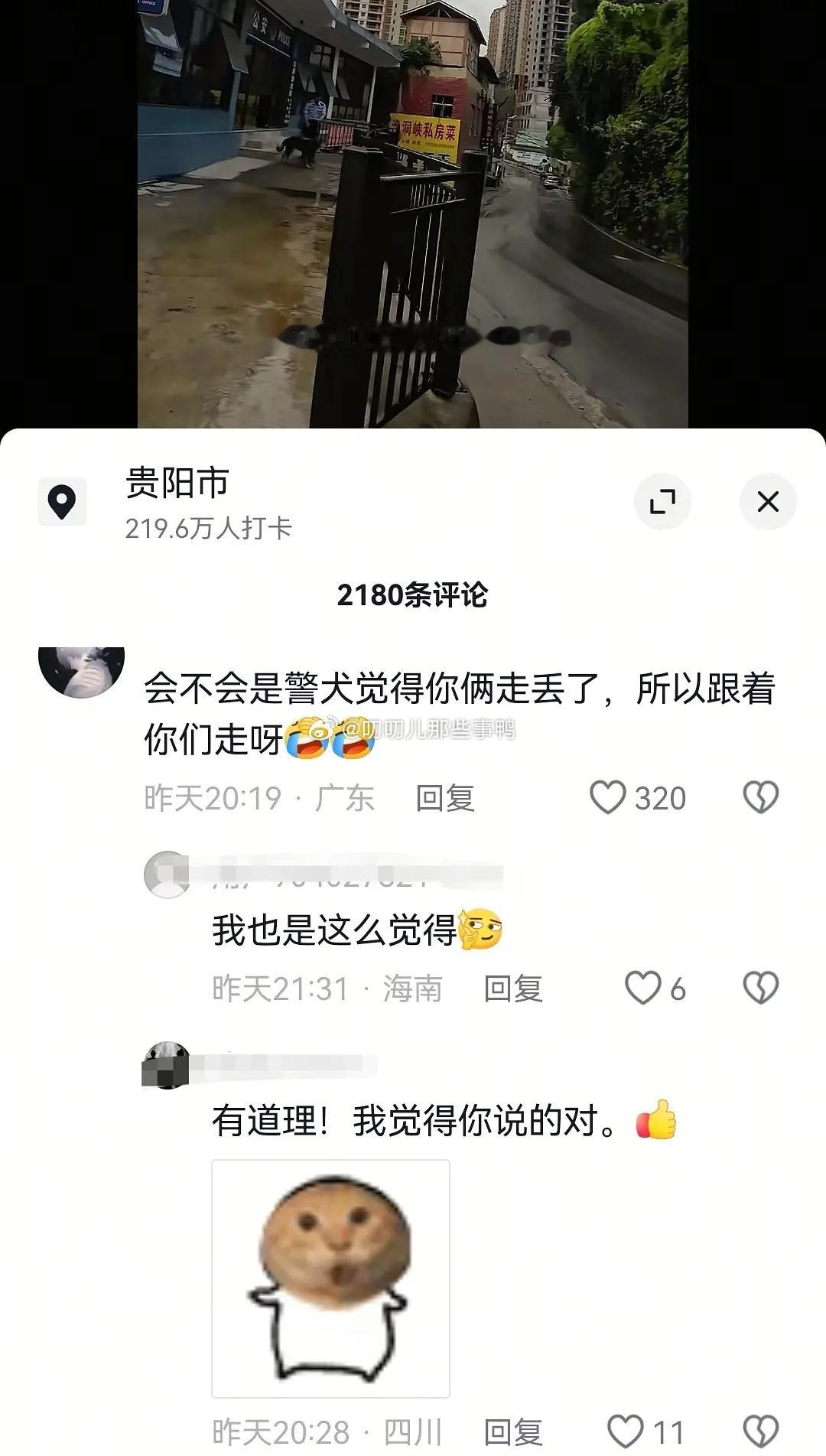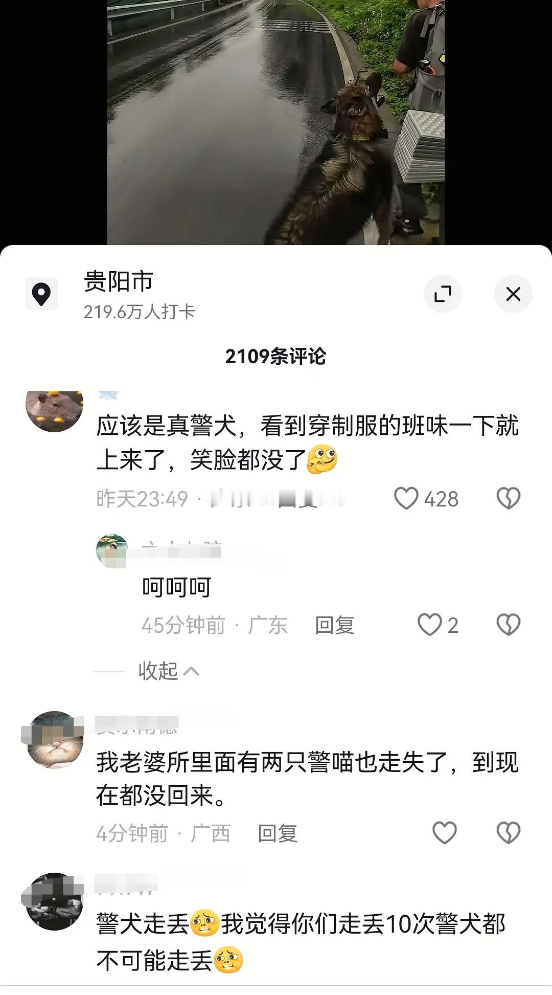 两个徒步的人遇到了一只走丢的警犬。感觉这个🐶不是走丢的,是自己跑出来的。工作肯定是反狗性的,警犬都不想上班😅😅