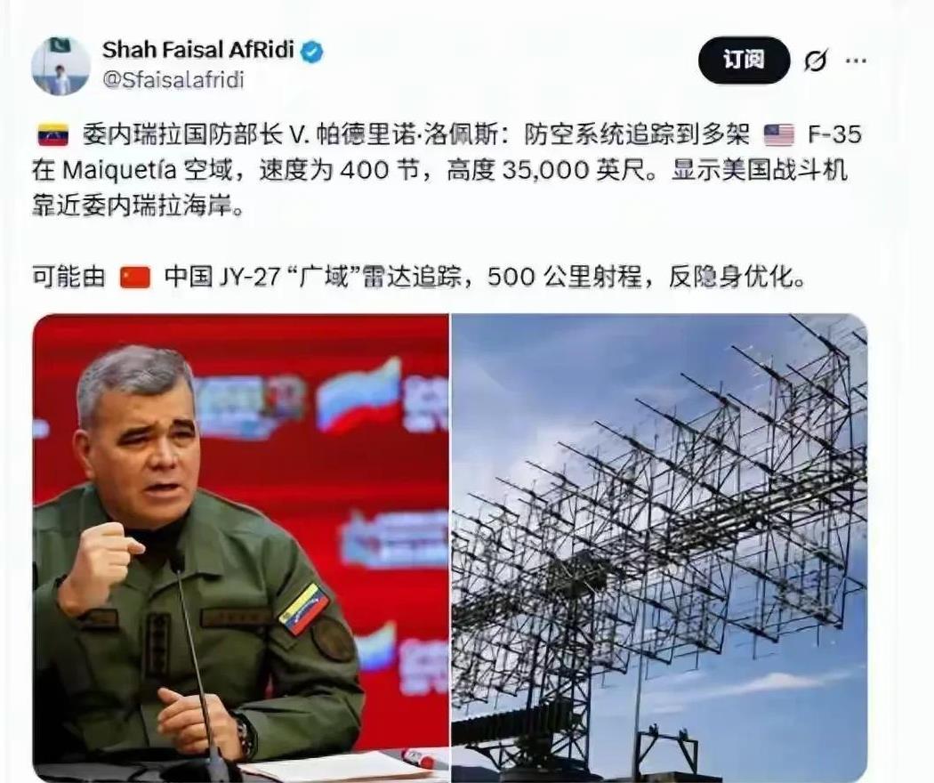 有种强烈的预感,美军的F35或者是F22可能会栽在委内瑞拉。 委内瑞拉利用中国的反隐身雷达成功的探测到了美军的隐身战机,并且追踪取证,如果在双方开战之际,委内瑞拉军方就等一声令下,既然能够探测,那击落应该不成问题。 早就说过,美军离走下神坛只差一场战争,而这场战争看来根本不需要中国亲自出手。