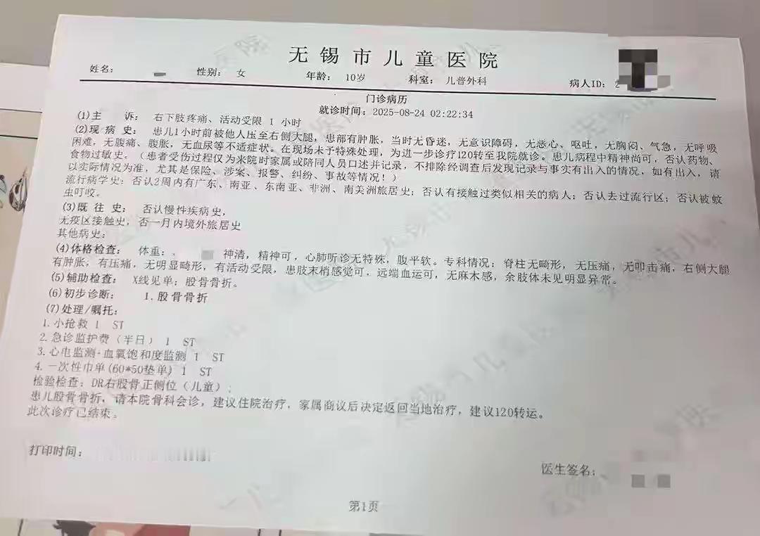 火车上铺“咚”的一声巨响 10岁女孩直接被砸得撕心裂肺! 这飞来横祸够糟心了 更寒心的是砸人男子一句“回去筹钱”就彻底失联了 真是没担当透了。 事情是8月24号凌晨,朱女士带女儿坐火车去杭州,母女俩睡在下铺。快到无锡站时,上铺那名男乘客下车前想起忘拿眼镜,爬回去取时没抓稳,刚好摔下来砸中女孩大腿。医院一查是右股骨骨折,手术做了好几个小时,孩子原本爱游泳,现在吃饭、上厕所都得躺着,情绪低落到不行。 一开始男子态度还行,陪着去医院垫了押金,还买了护理用品。可孩子术后第二天,他发消息说手头没钱要回去筹钱,之后就很少回应。9月上旬接了次电话要医疗票据,再之后电话不接、微信不回,彻底玩起了消失。 律师早说了,他没抓稳导致伤人,明显有过错,医药费、康复费都得他赔,躲是躲不掉的。现在朱女士只能收集病历、报警回执这些证据,准备起诉维权。 这种拿“筹钱”当借口逃避责任的人,真该被追责。