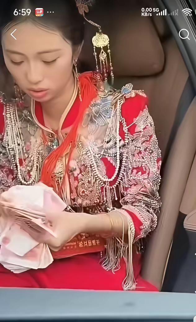 吉时到了又怎样?车门里的新娘只顾低头数钱,把车外急得冒汗的新郎一家当空气。"少一分就不下车!" 这话冷冰冰砸出来,让人寒心。 是呀,婚礼可以延迟,爱情也不值一文,下车费可是一分不能延迟,更是一分不能少。 任你时间一分一秒的过,那数钱的感觉真好! 婚礼本应是幸福的起点,却被这样的闹剧蒙上阴影。大家说说,这样的婚姻开局,真能走得长远吗?