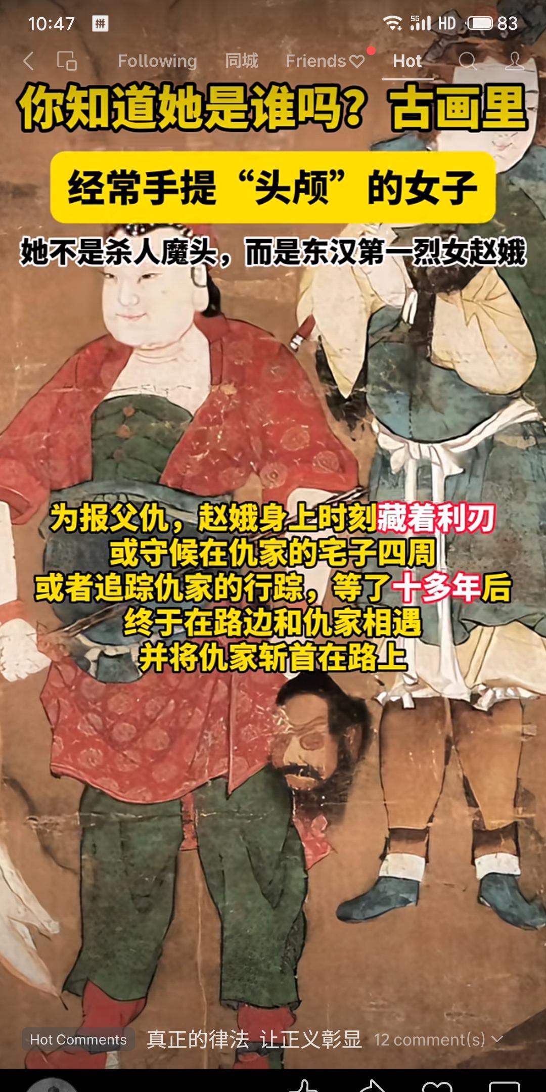 东汉烈女赵娥为报父仇,十余年间身怀利刃追踪仇家李涛,最终在路上将其斩首。她随后手