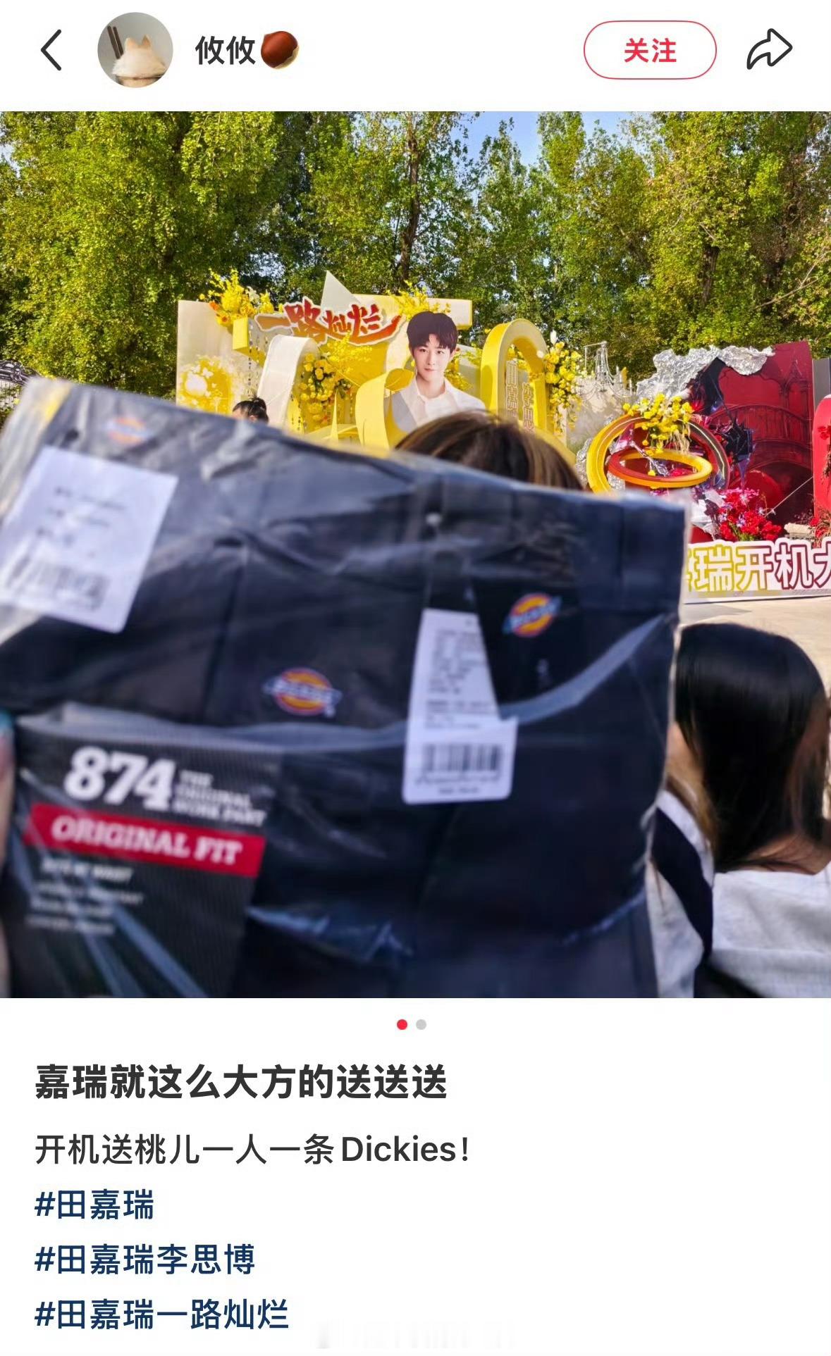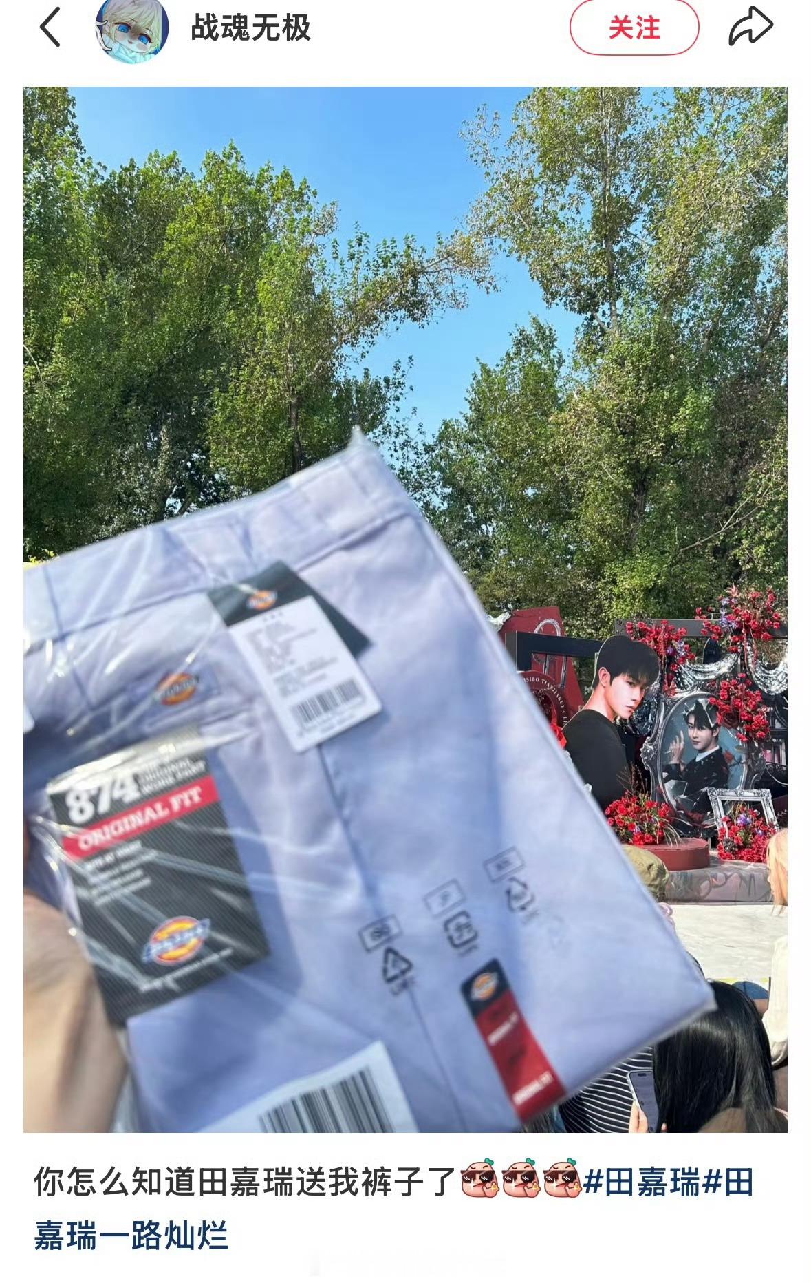 田嘉瑞给现场粉丝每人送一件几百块钱的裤子内娱第一人[泪奔]好大方的嘉瑞人好好田嘉