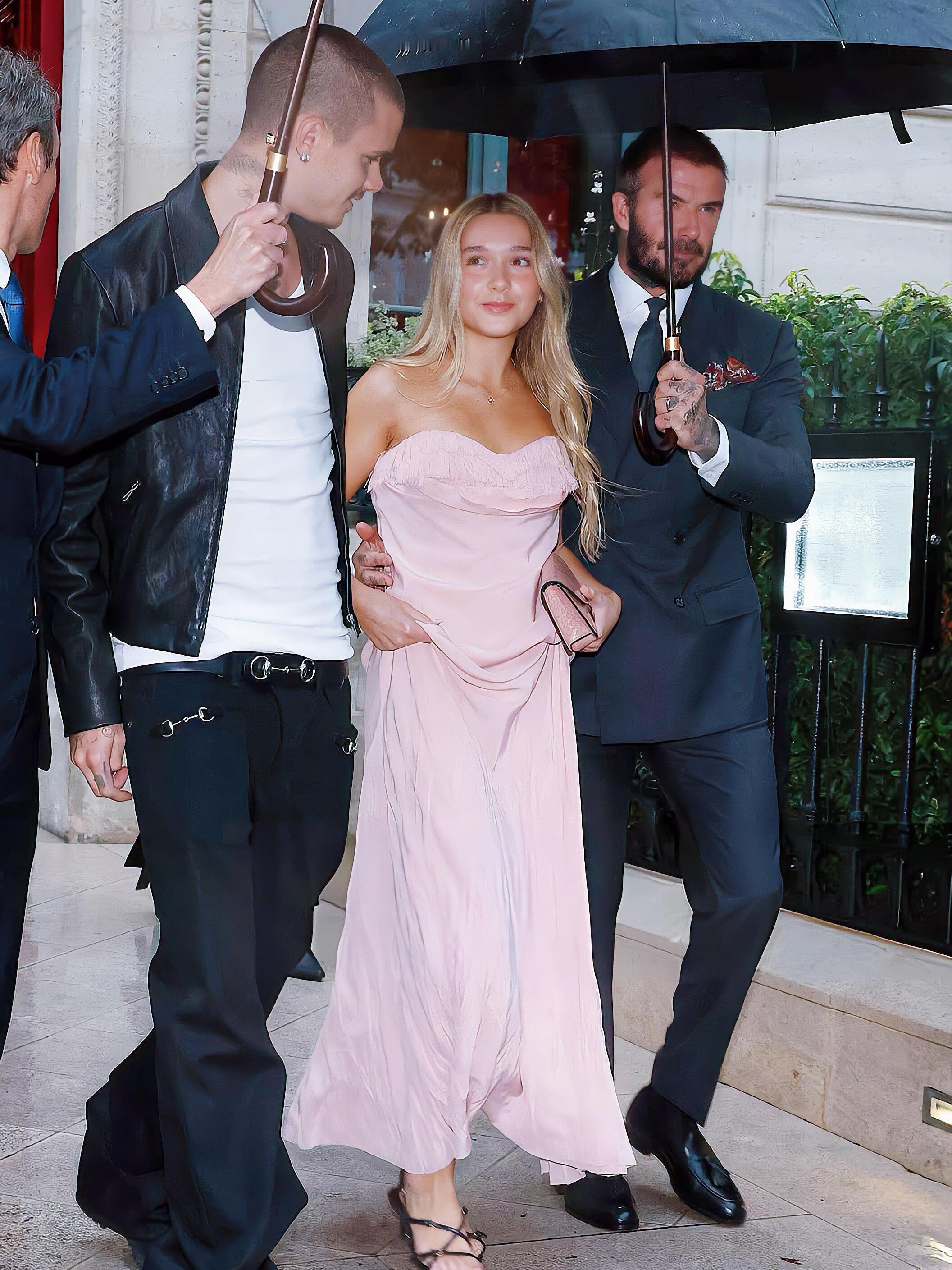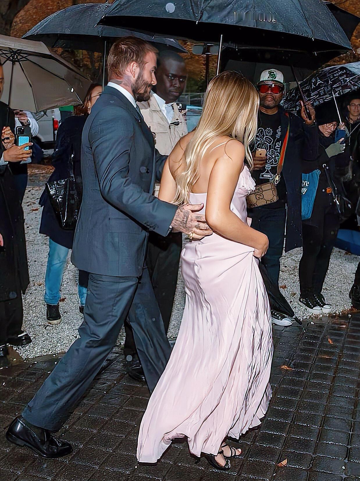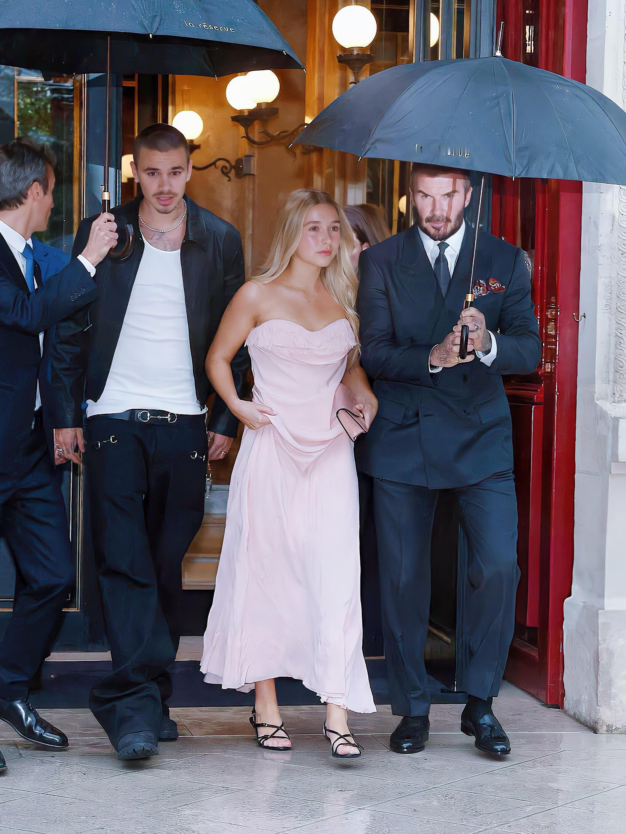 贝克汉姆一家巴黎时装周看秀❗️小七长大了,这个爸爸是真疼女儿,全程打伞护着!