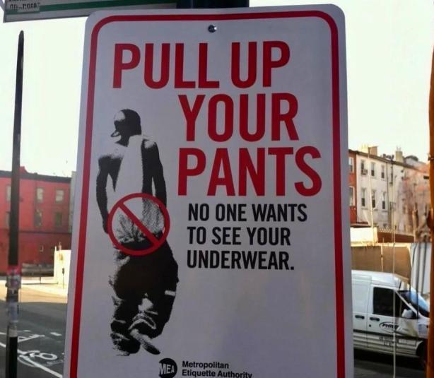 估计很多国人不知道这个梗,就是很多美国青少年 boy,特别是黑人青少年,以不系腰带裤子下垂、露出半拉屁股为时尚。起源是青少年犯事被拘留时会被收走腰带以防自杀,久而久之青少年就以此炫耀自己进过局子而成为时尚,其实是青少年反叛期的一种行为方式。 上世纪八九十年代,美国的黑人犯罪率飙升,监狱人满为患。 按规定,犯人入狱时要被收走皮带、鞋带,防止自残或打架。 而很多人裤子本来就宽大,没了腰带自然就往下掉。 于是“裤腰下垂、露半个屁股”就成了监狱里最常见的造型。 这些人刑满出狱,重新回到街头,反而觉得这种穿法很酷,成为他们“混过”的象征。 这种“以丑为傲”的反叛姿态,很快在黑人贫民区少年之间流行开来。 而且在黑人文化里,这是一种“逆社会信号”,他们长期生活在被歧视、被压迫的底层,主流社会嫌他们脏乱、没教养,他们就偏偏要把这种“不入流”穿在身上,让它变成一种抗议的符号。 到九十年代,这种穿法被嘻哈文化彻底放大,像很多说唱巨星,也都把街头混混的装束搬上了舞台。 一时间,裤子越掉越低,越低越能代表“真正的街头”。 不过这种“时尚”很快引发了连锁反应,2005年,美国多个城市开始立法禁止下垂裤,理由是“不雅观”“影响公共秩序”。 佛罗里达州的一个小镇甚至规定,裤子低于胯部3英寸以上,罚款50美元或社区服务。 但些禁令反而让下垂裤更火了,青少年们把提裤子当成“投降”,把继续下垂当成“对抗”。 年轻人上传各种创意下垂裤照片,甚至有人把裤子改造成“防提款装置”。 下垂裤的流行,其实暴露了美国社会对黑人文化的双重标准。 白人青少年穿宽松裤子是“潮流”,黑人青少年穿同样的裤子就是“威胁”,白人歌手在MV里露内裤是“艺术表达”,黑人歌手这么做就是“低俗”。 掉裤风不是单纯的装扮,而是一种对体制、对权威的反叛姿态,是被边缘化群体通过外形表达的愤怒与不屑。 就像rapper唱的那样:他们拿走了我的腰带,但拿不走我的骄傲。