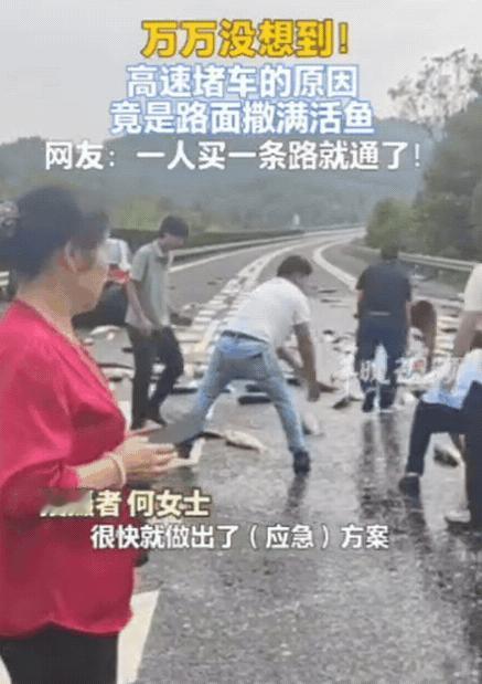 这次高速堵得不是车!湖南,一女子女子上高速前,看导航是绿波,没想到,她才刚上高速就遇到了堵车,这种情况大多数人都会说倒霉,可她却发现,前面几位大哥,不仅不生气,还乐呵呵的,她干脆解开安全带,也推开车门下去看看。她下车一看,原来,堵车的原因,居然是路面撒满了活鱼! 最近,湖南某高速公路上发生了一幕让人哭笑不得的场景,当天上午一辆满载活鱼的货车行驶在高速公路上,司机师傅本想赶在中午前把这批新鲜货送到批发市场,谁知道车厢后门的锁扣在颠簸中松动了,里面的篷布被风掀开一角,里面的活鱼就像找到了越狱的机会,纷纷往外蹦。 等司机从后视镜发现不对劲时,已经有不少鱼掉在了路面上,他赶紧踩刹车,可惜为时已晚,几百条鱼已经在高速路上开起了跳跳会,草鱼、鲫鱼、鲤鱼,大的有两三斤重,小的也有巴掌大,它们在阳光下闪着银光,尾巴啪嗒啪嗒拍打着地面。 后面的车辆见状纷纷减速停车,原本120公里时速的高速路瞬间变成了停车场,有些鱼还特别调皮,专往车轮底下钻,有的顺着路面的坡度一路滚到了应急车道,还有几条体力好的,居然蹦到了中央隔离带附近。 按理说遇到这种堵车,大家心情都不会太好,可现场的画面却出人意料地温馨,几位男司机看清楚情况后,不但没有抱怨,反而主动下车帮忙。有人从车里找来编织袋和纸箱,有人负责拦住后面的车辆,还有人蹲在地上小心翼翼地捡鱼,生怕弄伤了鱼鳞。 师傅您别着急这鱼还新鲜着呢捡起来还能卖,一位穿着休闲装的年轻人一边帮忙一边安慰货车司机,另一位大哥更是幽默,这下好了高速路变成免费钓鱼场了,就是这鱼有点贵得交过路费,现场的气氛因为大家的善意变得轻松起来。 湖南的一位女司机看到堵车后,下车也加入到帮忙的行列,她用手机记录下来了这一幕,并向高速交警反映了情况,不到十分钟交警和路政人员就赶到了现场,他们迅速设置了警示标志,组织人员清理路面。 交警同志也被这场面逗乐了,执勤这么多年,头一回在高速上抓鱼,他们一边指挥交通,一边帮着把鱼转移到安全地带,有经验的路政人员还提醒:路面上有鱼留下的黏液特别滑,大家通过时一定要减速慢行。 经过大家齐心协力,路面很快清理干净,货车司机把捡回来的鱼重新装好,这次他特意用铁丝把车门固定了三道,还在上面加了防护网,临走前他不停地向帮忙的人道谢,眼圈都有些发红。 其实类似的货物散落事件在高速上并不少见,有运西瓜的车翻了,满地滚圆的西瓜让人哭笑不得,有拉鸡蛋的货车侧翻,高速路瞬间变成蛋花路,还有运啤酒的车出事故,泡沫和酒香飘了一路,这些看似有趣的事故背后,都隐藏着巨大的安全隐患。 交警提醒广大货车司机,在装载货物时一定要做好固定措施,特别是运输活物或易滑动的货物时,更要格外小心,出发前要仔细检查车门、绳索、防护网等是否牢固,行驶途中也要通过后视镜随时观察货物状态。 对于普通司机来说,在高速上遇到异常情况时,一要保持冷静及时减速并打开双闪灯提醒后车,如果需要下车查看,要把车停在应急车道,并在车后150米处放置警示标志。 这次鱼跃高速事件虽然没有造成人员伤亡,但也给大家提了个醒,高速公路不是普通道路,任何疏忽都可能酿成大祸,不过事件中展现出的人情味也让人感动,在意外面前陌生人之间的互帮互助,让冰冷的高速路多了几分温度。 堵车堵的是路,但通的是人心,生活中总会有各种意外,但只要人与人之间多一份理解和善意,再糟糕的情况也能变成温暖的回忆。 麻烦看官老爷们右上角点击一下“关注”,既方便您进行讨论和分享,又能给您带来不一样的参与感,感谢您的支持!