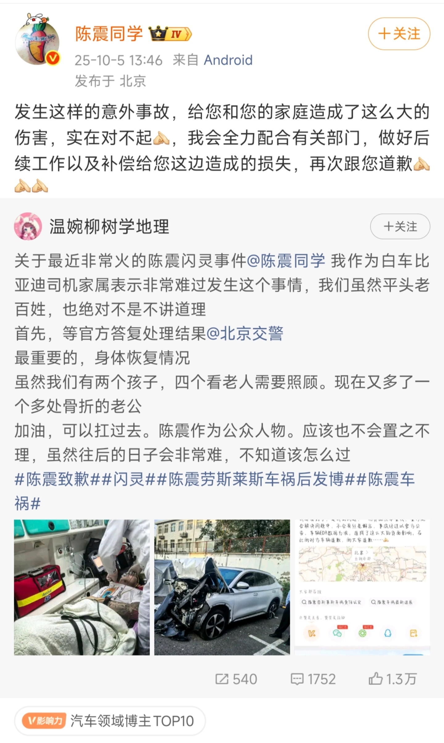 昨天肇事者陈某持续更新微博,却没有联系受害者家属处理?[哆啦A梦害怕]