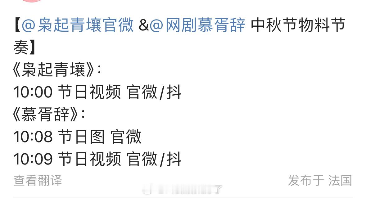 杨紫《生命树》、白鹿《莫离》、孟子义李昀锐《尚公主》、迪丽热巴《枭起青壤》、孟子义何与《百花杀》…明天都有中秋物料,燥候👏