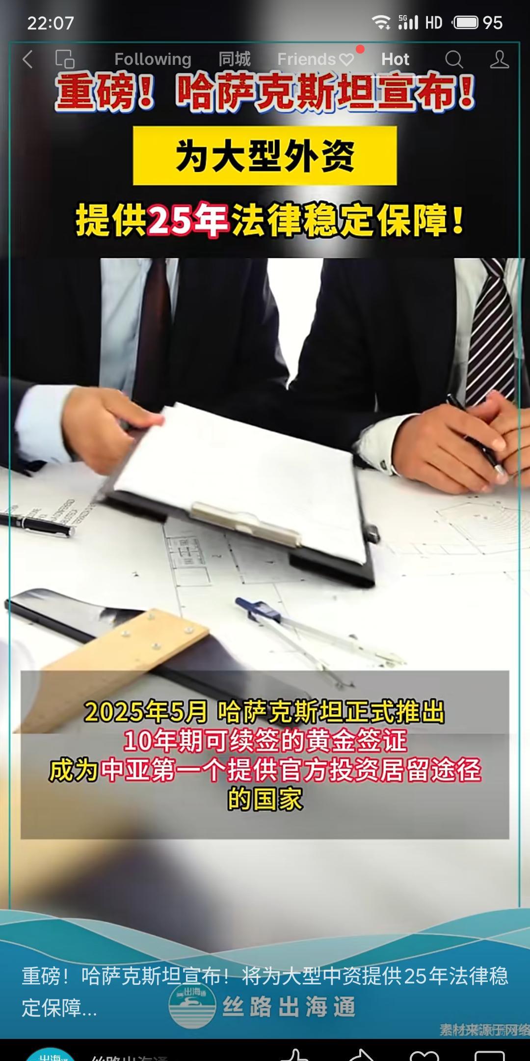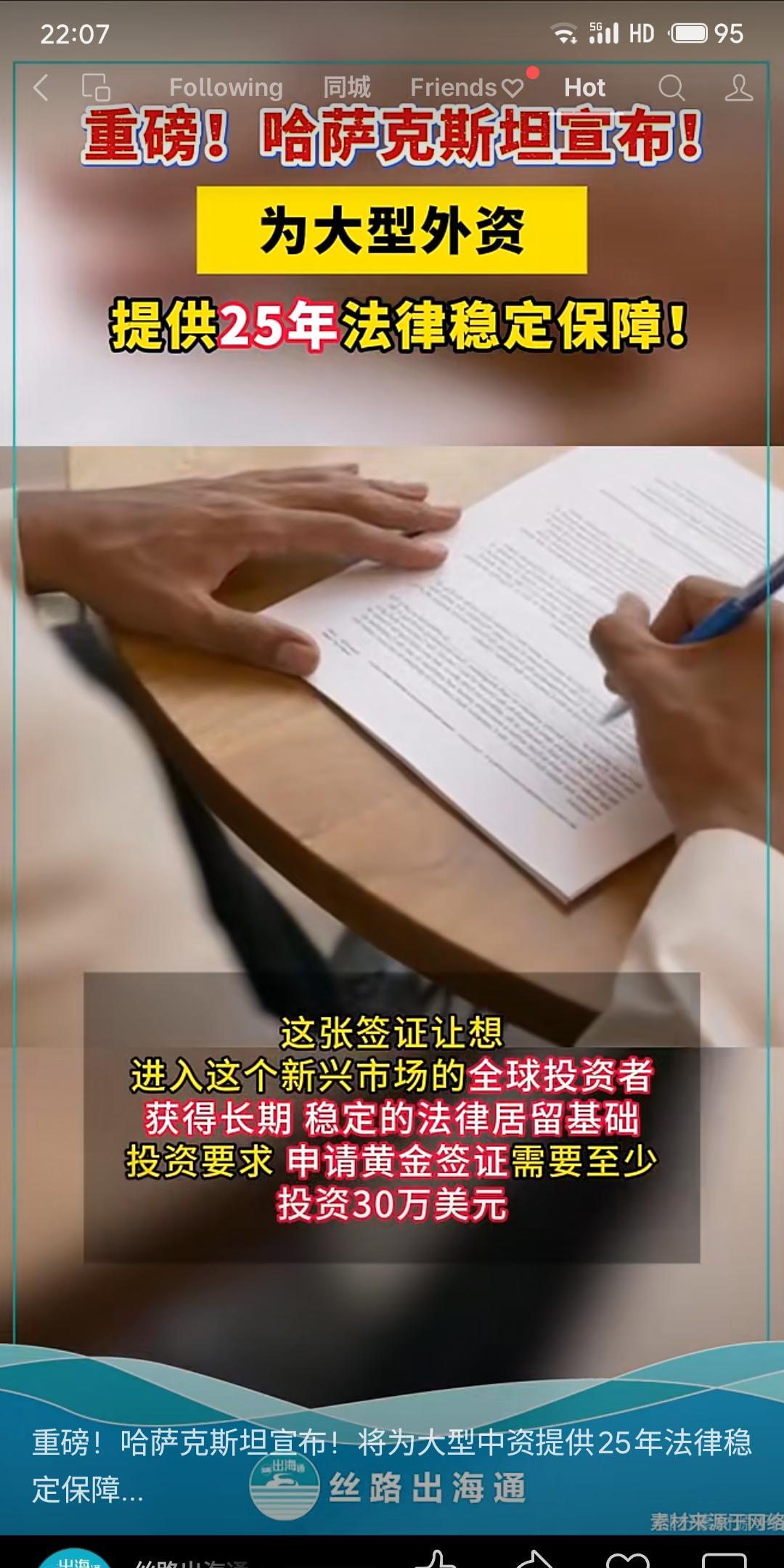 哈萨克斯坦推出两项吸引外资的新政策:一是为投资额超5400万美元的大型外资提供最长25年的法律稳定性保障协议;二是推出“黄金签证”,投资至少30万美元可获10年期可续签居留许可,成为中亚首个推行投资居留的国家。此举旨在为国际投资者提供长期稳定的法律与居留环境。