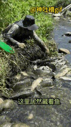 根本抓不完的鱼:悄悄来到小溪的一处草丛边,拨开厚厚的水草,里面藏了一大堆大鱼,这