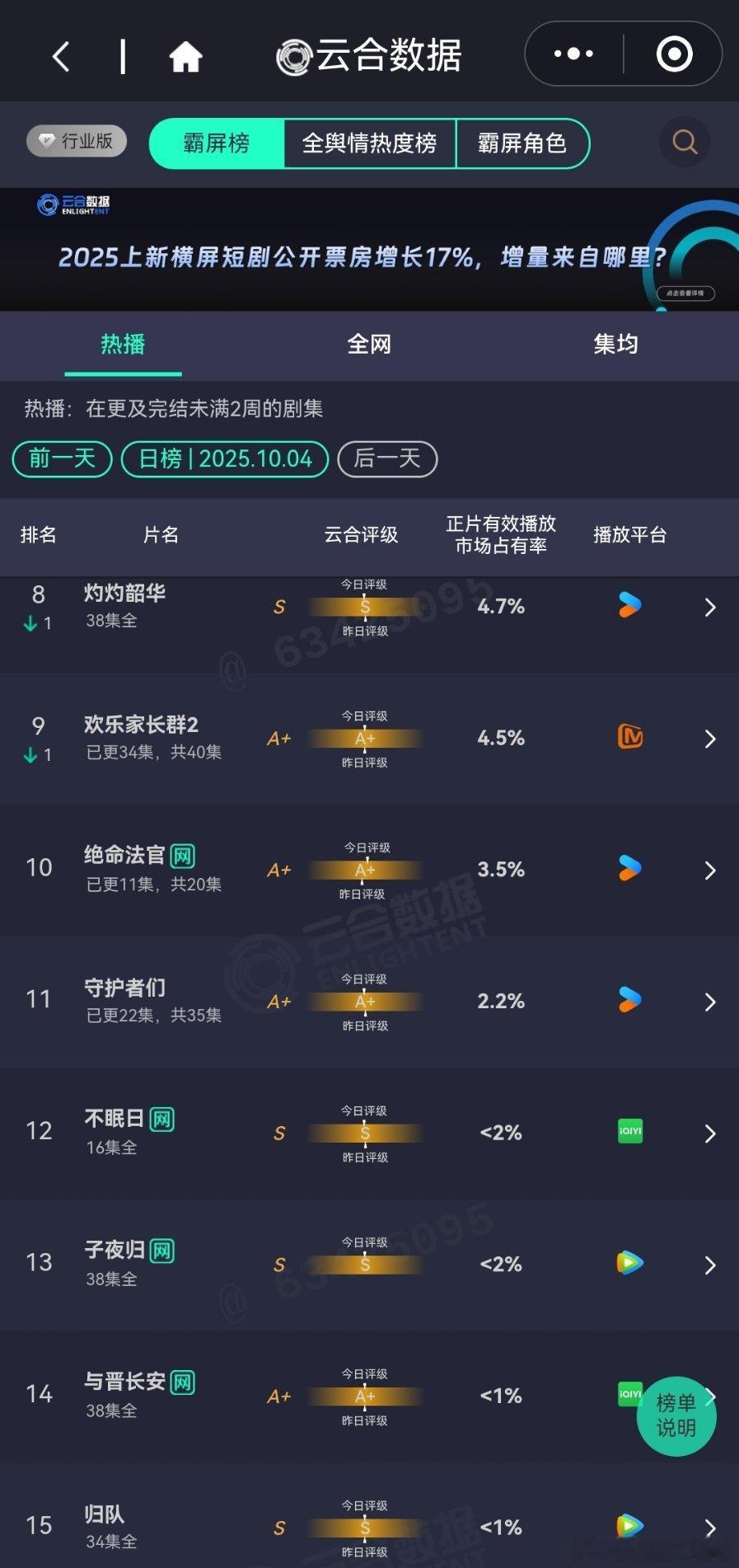 貌似今年占比破40%的剧里面,目前只有生万物单日播放量破亿了,不过许我耀眼按照目前趋势还是有很大机会破亿的。