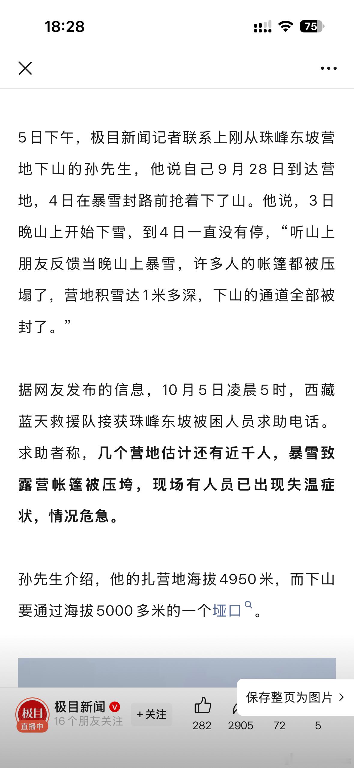 珠峰东坡营地近千人因暴雪被困,有人员已出现失温症状,已出动数百人救援。真可怕。。。