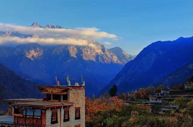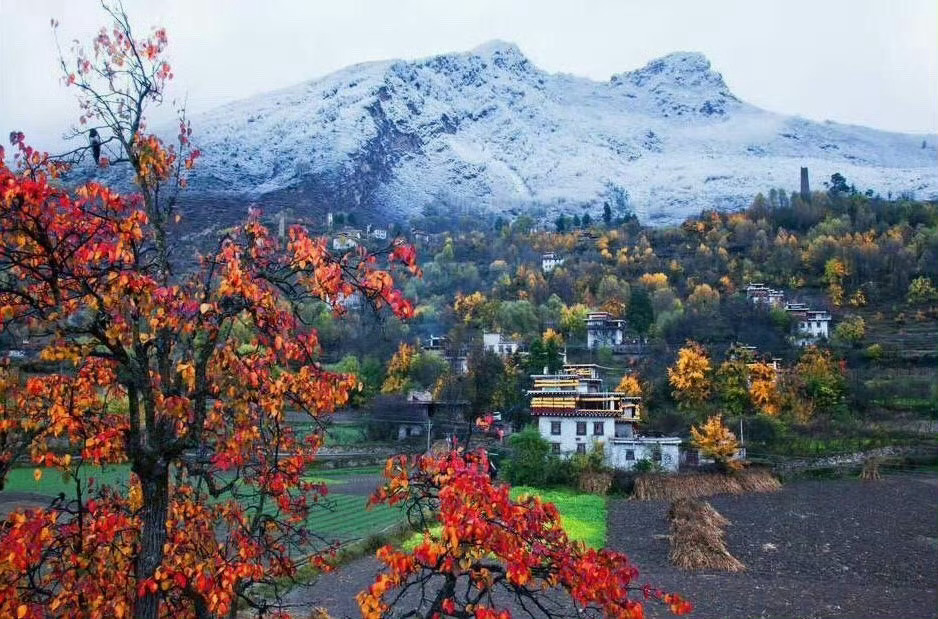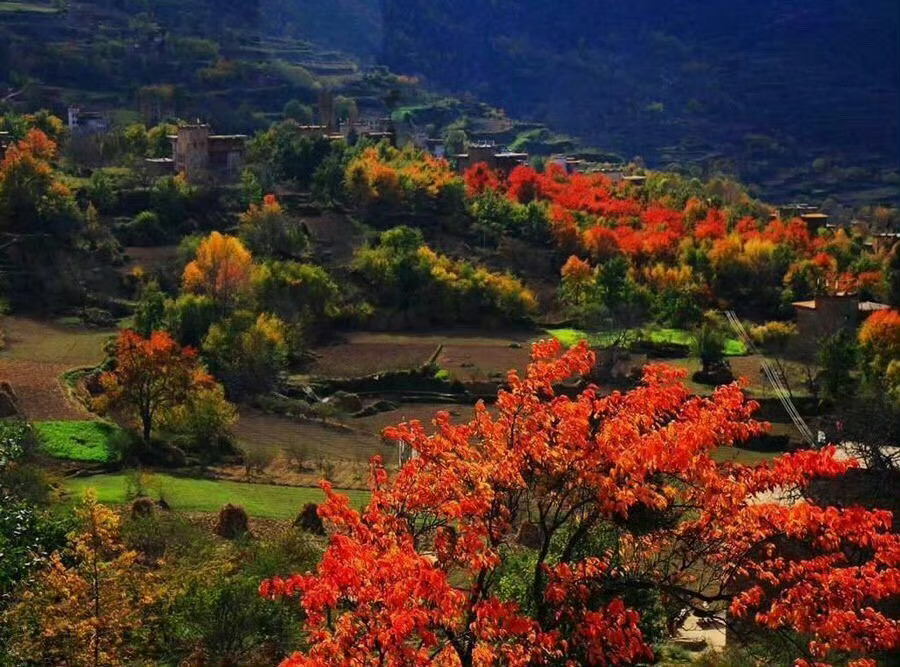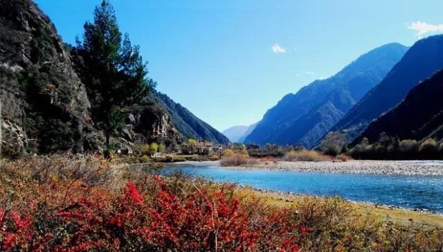 四川·丹巴藏寨,金秋的藏寨,树叶渐染红色,与空灵的山谷、清澈的溪流,构成了一幅田园牧歌式的多彩画卷。