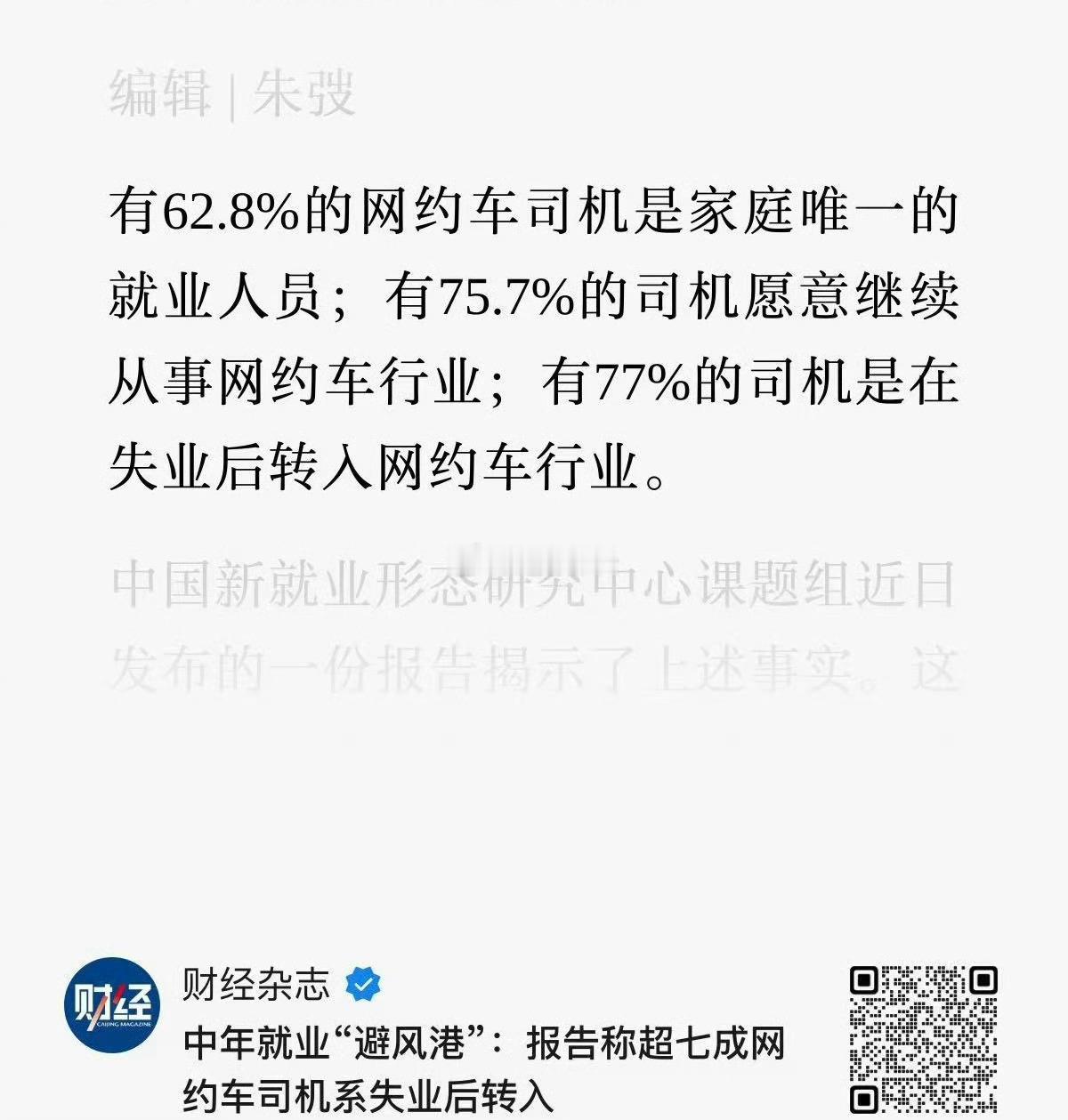 财经:有62.8%的网约车司机是家庭唯一的就业人员;有75.7%的司机愿意继续从