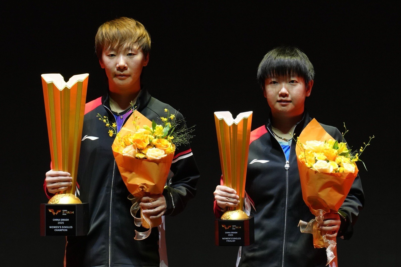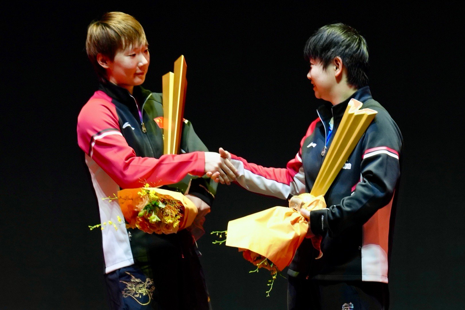 孙颖莎领奖后和王曼昱握手 有爱~
