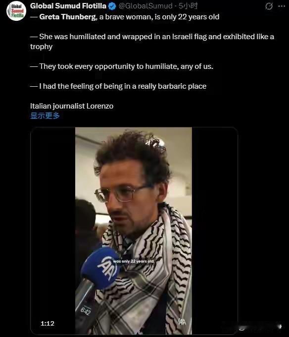 环保少女通贝里,疑遭以军虐待! 全球坚韧船队最终还是失败了,目前数据显示大概有450多名船员被以色列扣押。 其中就包括环保少女通贝里,在各国的外交斡旋下,首批137人已经释放并送到了土耳其。 随后这些人接受了英国卫报和美国cnn等媒体的采访! 在采访中,他们对媒体表示,被羁押过程中,几乎所有的人都遭到了以色列的虐待。 其中以环保少女通贝里为主! 目击者表示,以色列士兵拽着通贝利里的头发殴打! 逼她在地上爬行,并亲吻以色列国旗! 而随后瑞典方面的法律顾问也证实了这一点,通贝里遭到羁押之后,瑞典大使馆迅速派法律人士去看望她。 被扣押的通贝里告诉瑞典官员 ,她遭到了严酷的虐待。 他被关在一个满是臭虫的狭窄肮脏牢房里面,缺乏食物和饮用水,很多以色列士兵还会强迫她举着以色列国旗拍照。 另据英国卫报报道称,一名被释放的环保主义者对媒体透露。 以军残酷的虐待每一名扣押人员,基本上每个人都被手铐锁住,超过16个小时。 跟自己拷在一起的,还有一名意大利的议员! 以色列人企图用饥饿让大家屈服,14个人的牢房只给一盘食物,而且缺乏饮用水。 部分人甚至逼着去马桶里面寻找淡水。 而且在每个检查站,这些被服人员都被强迫脱光衣服进行检查。 以色列人企图用暴行和羞辱来让这些人屈服! 但是全球坚韧船队的每一名成员都没有屈服! 以色列国家安全部的部长本格维尔曾经视察监狱。 他指责所有扣押的人员都是恐怖分子,但是他的言论遭到了现场被扣押人士的驳斥。 大家当面告诉他以色列才是恐怖分子,他们在巴勒斯坦地区还有加沙所犯下的种种暴行才是恐怖主义。 恼羞成怒的以色列安全部部长,最后只能转身离开! 还有一些被释放人员爆料称,以色列曾经诱骗通贝里签署一些文件,但是遭到通贝里的拒绝! 目前瑞典大使馆虽然接触到了通贝里等人,但是局势很艰难,他们也无法提供更多的帮助。 以色列的态度非常的强硬! 很显然,以色列企图用残酷的暴行,逼迫团队的这些领导层签署一些声明! 而这些声明就是换取他们自由的条件! 咱们现在就要看看通贝里他们的骨头够不够硬了! 相信当媒体广泛的传播这些消息之后,欧洲会引发新一波的反对以色列的游行示威活动。 其实现在已经开始了,3号意大利等地就已经爆发了超过10万人的游行示威活动。 大家不要着急,让子弹再飞一会儿!以色列人,别的不会,火上浇油的本事还是有的! 当这些暴行被越来越多的人知晓之后,全球反以的浪潮会更加的猛烈! 当然了,以色列还会持续在互联网上投资,雇佣大量的水军给他们洗地。 其实到今天我们还能看到这些水军在活跃。 他们只字不提以色列抢夺巴勒斯坦人土地的事实。 只字不提以色列屠杀加杀人民的事实。 而单纯的断章取义去攻击哈马斯等组织的反抗行动,并且单方面的认定这是恐怖行动。 这种断章取义就是典型的以色列宣传说法! 大家想想这个道理其实很简单,敌人把你的家园给抢走了,你的房子你的土地,你的工厂全都抢走了。 然后还不允许你反抗,你丢一块石头,他就攻击你是恐怖分子,然后屠杀你全家。 请问那些水军们,你们的良知呢?你们的良心只值那么几块狗粮吗? 你的眼睛里只看见了哈马斯在反抗,却完全无视巴勒斯坦人民家园丢失遭到侵略的事实。 完全无视加沙人民惨死的事实! 何为因,何为果? 是以色列入侵在先,之后才有哈马斯等组织反抗在后! 别人抢了你家的财产,然后还骂你破坏了和平! 你觉得这样的道理讲得通吗? 如果你觉得这样的道理讲得通的话,那你又怎么解释欧洲街头数10万人在游行示威向以色列抗议呢? 人民的眼睛是雪亮的!以色列人多年来编织的谎言。在现如今互联网的天下里面已经圆不下去。 谎言已经戳穿了,人设早就崩盘了! 人啊,还是要养一养自己的良心,那仨瓜俩枣的黑心钱,咱就别挣了!