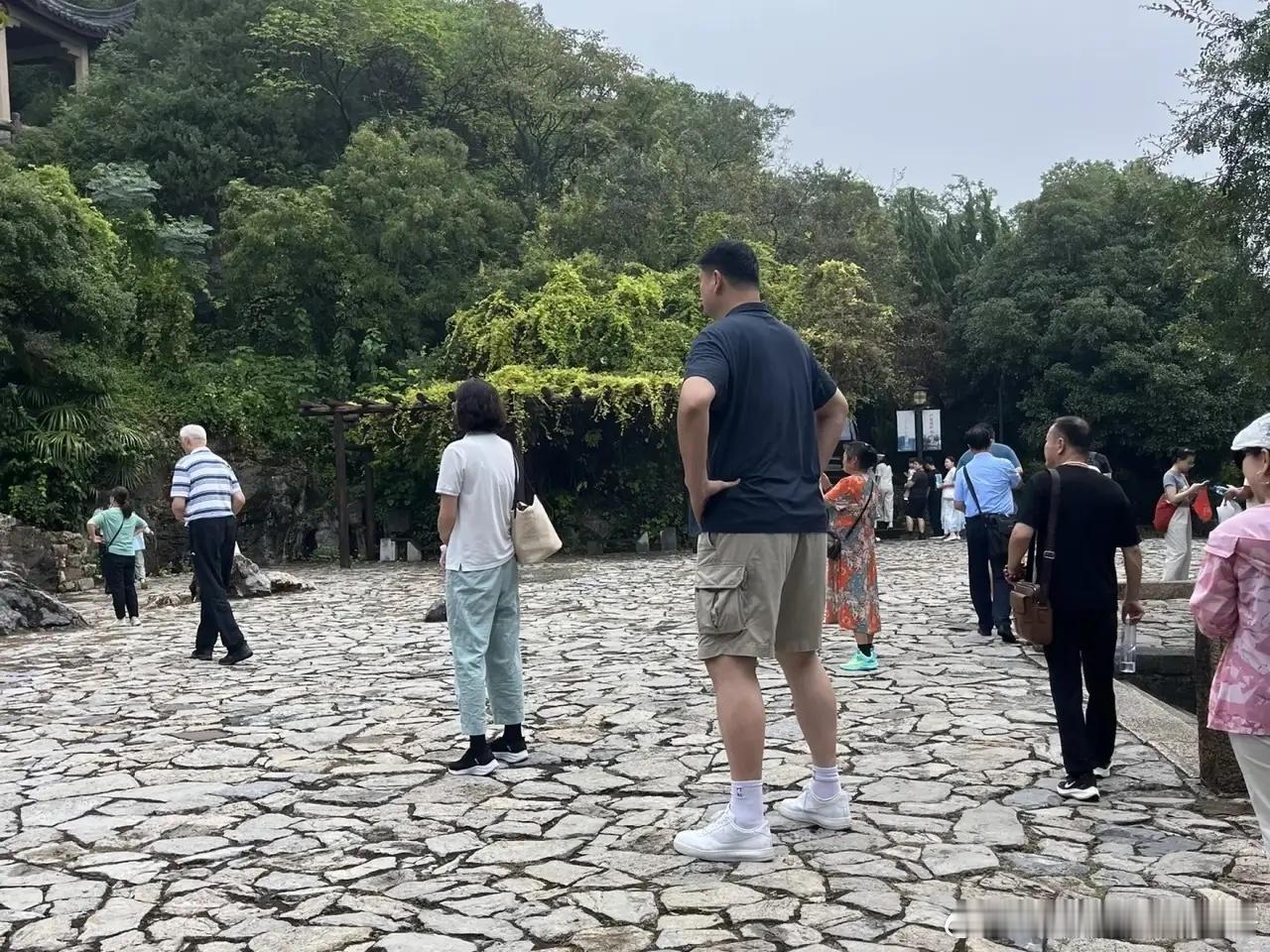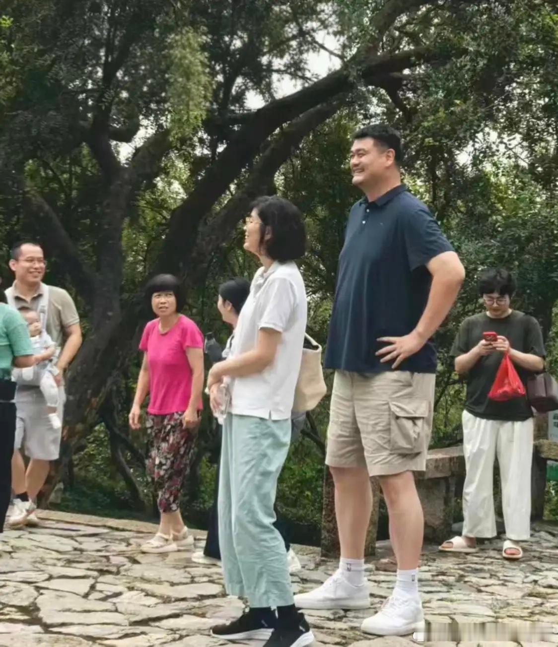 姚明和家人一起到苏州太湖西山岛旅游,他的老婆、女儿和岳母都在,一家人悠闲地欣赏风景。
