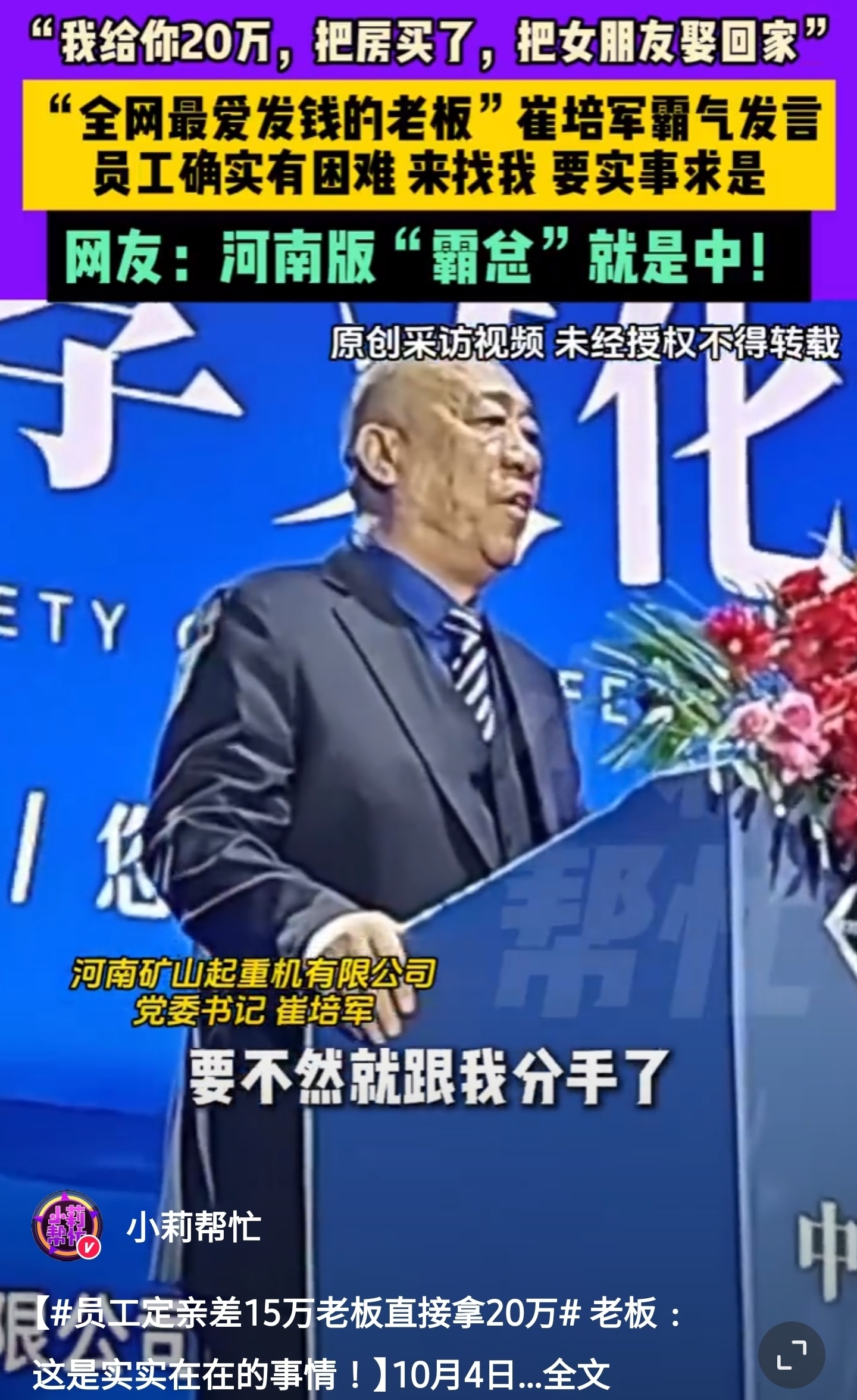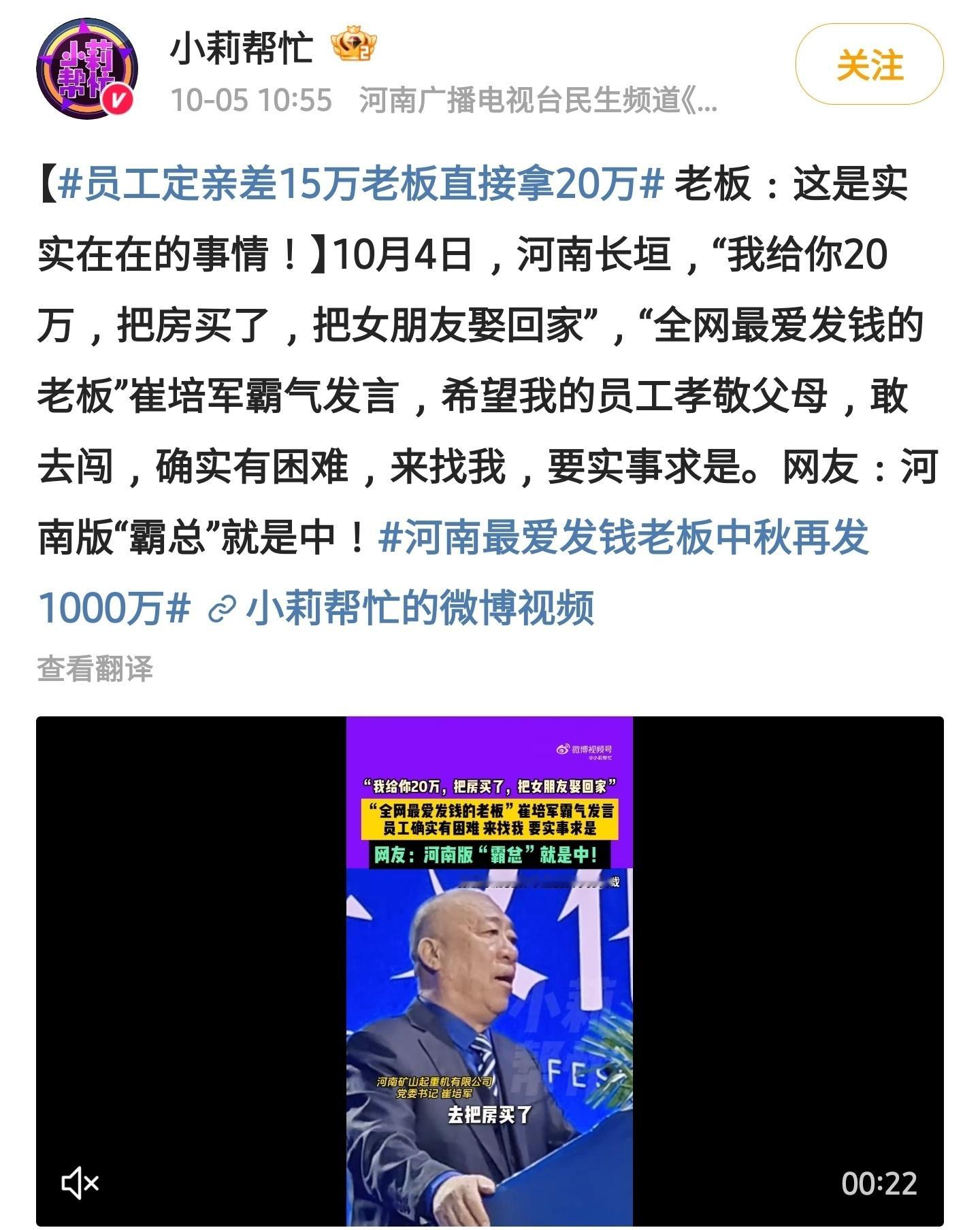 员工定亲差15万老板直接拿20万