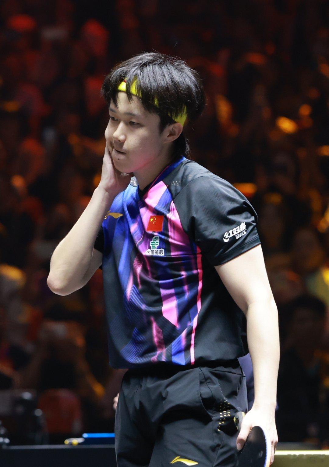 王楚钦气到扇自己巴掌这个男人对自己太狠了,我在场边听得啪啪响。。。这个冠军值了!