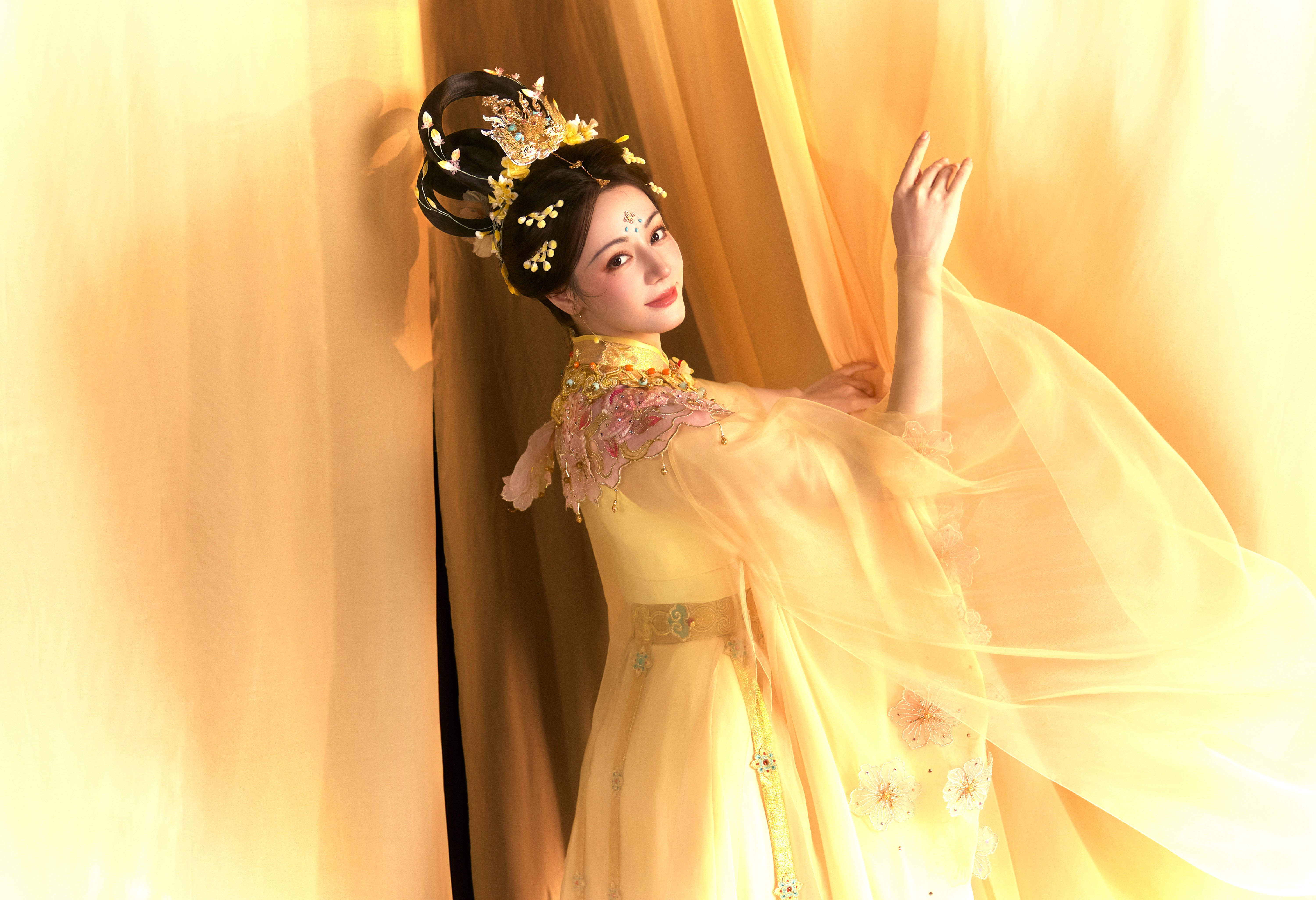 迪丽热巴一颦一笑间,既有盛唐仕女的华贵典雅,又具东方佳人的温婉韵致,仿佛从时光