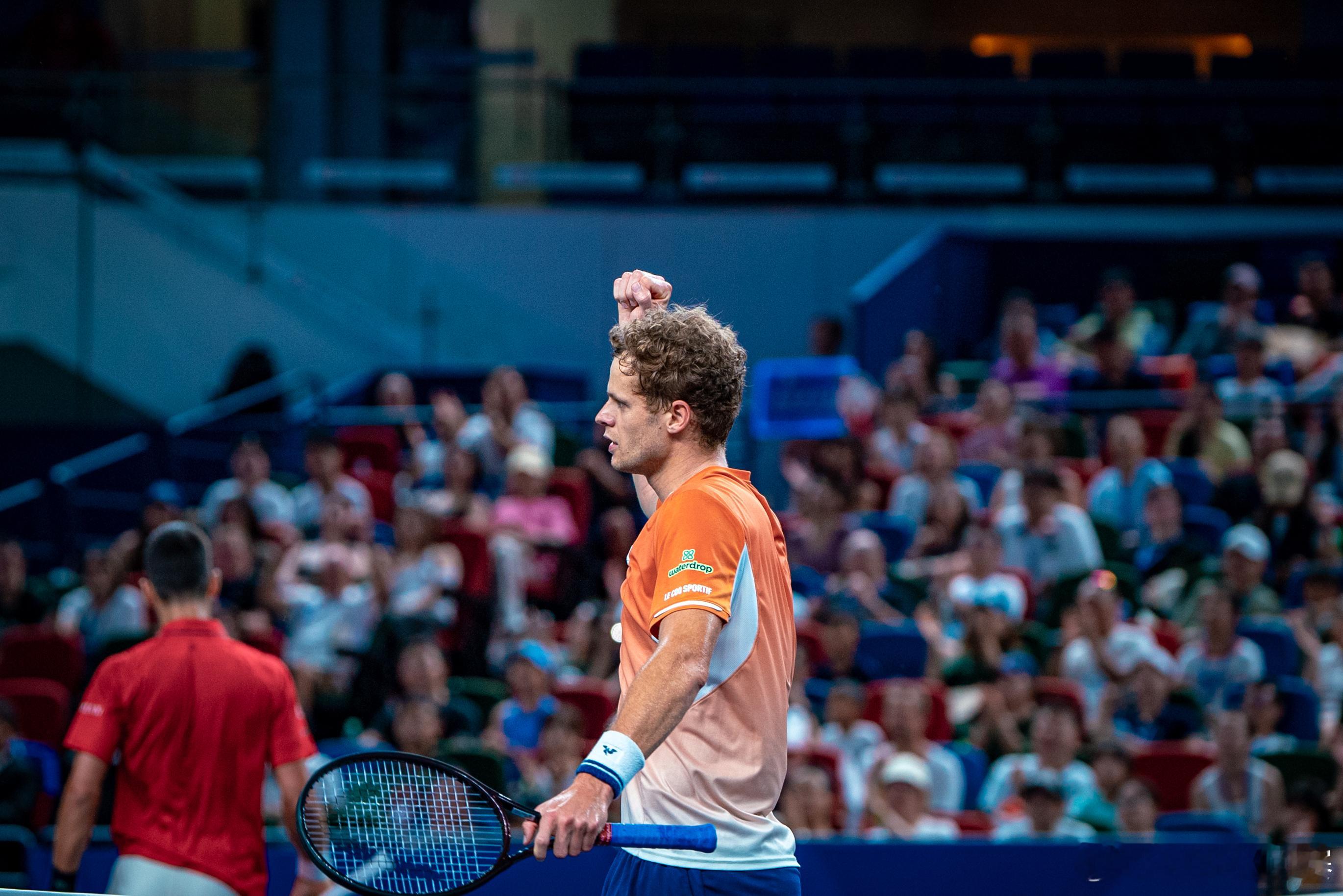 男单第三轮,资格赛球员汉夫曼6-4先下一城,大比分1-0领先四届赛会冠军德约科维奇!