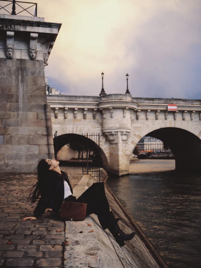 巴黎河畔的风也偏爱孙千 孙千于巴黎河畔现身,暗夜红唇与黑皮衣的搭配,复古飒姐风扑面而来。风轻吹,发丝散落,这状态随手一拍就是绝美大片,爱了!