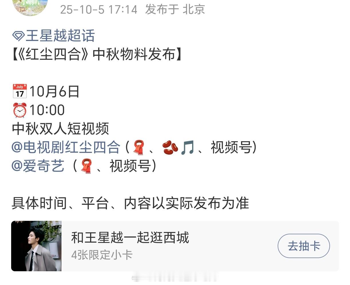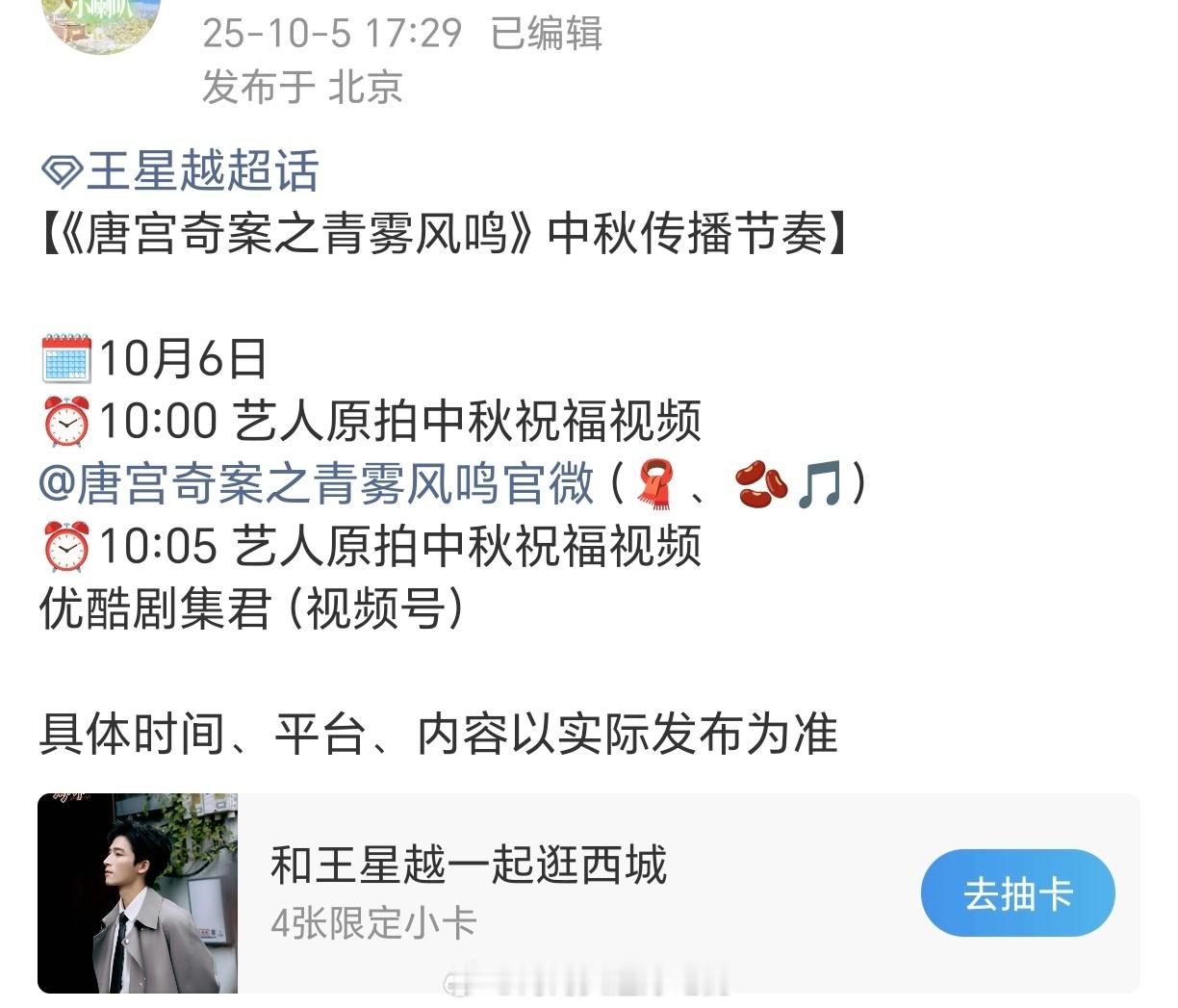 王星越的《红尘四合》《唐宫奇案》明天有新鲜的中秋节物料!期待我们星月的宇文弘策和