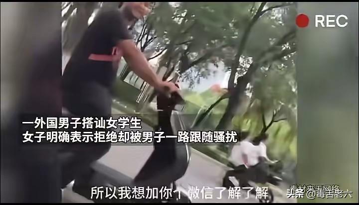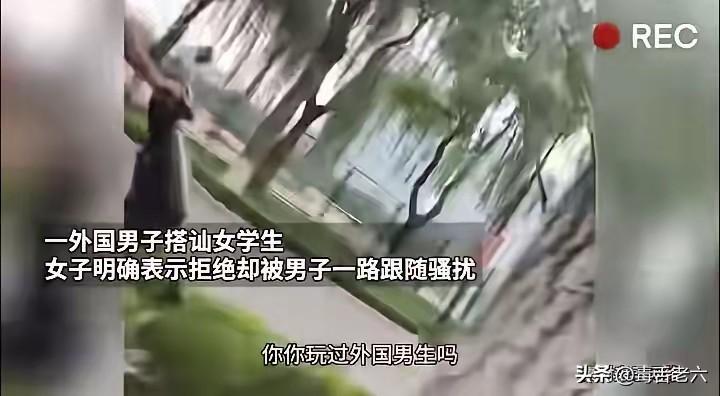一名外国男子搭讪中国女学生,女子明确表示拒绝后,该外国男子仍一路跟随“骚扰”。刚