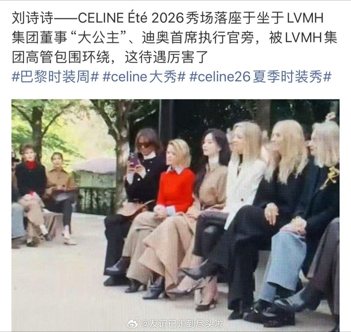 刘诗诗与LVMH大公主合影 刘诗诗和LVMH集团大公主、CELINE品牌全球CEO、著名演员乌玛瑟曼大合影了,并且落座位置被LVMH集团高管环绕,一姐在时尚待遇这块没输过👍刘诗诗官摄