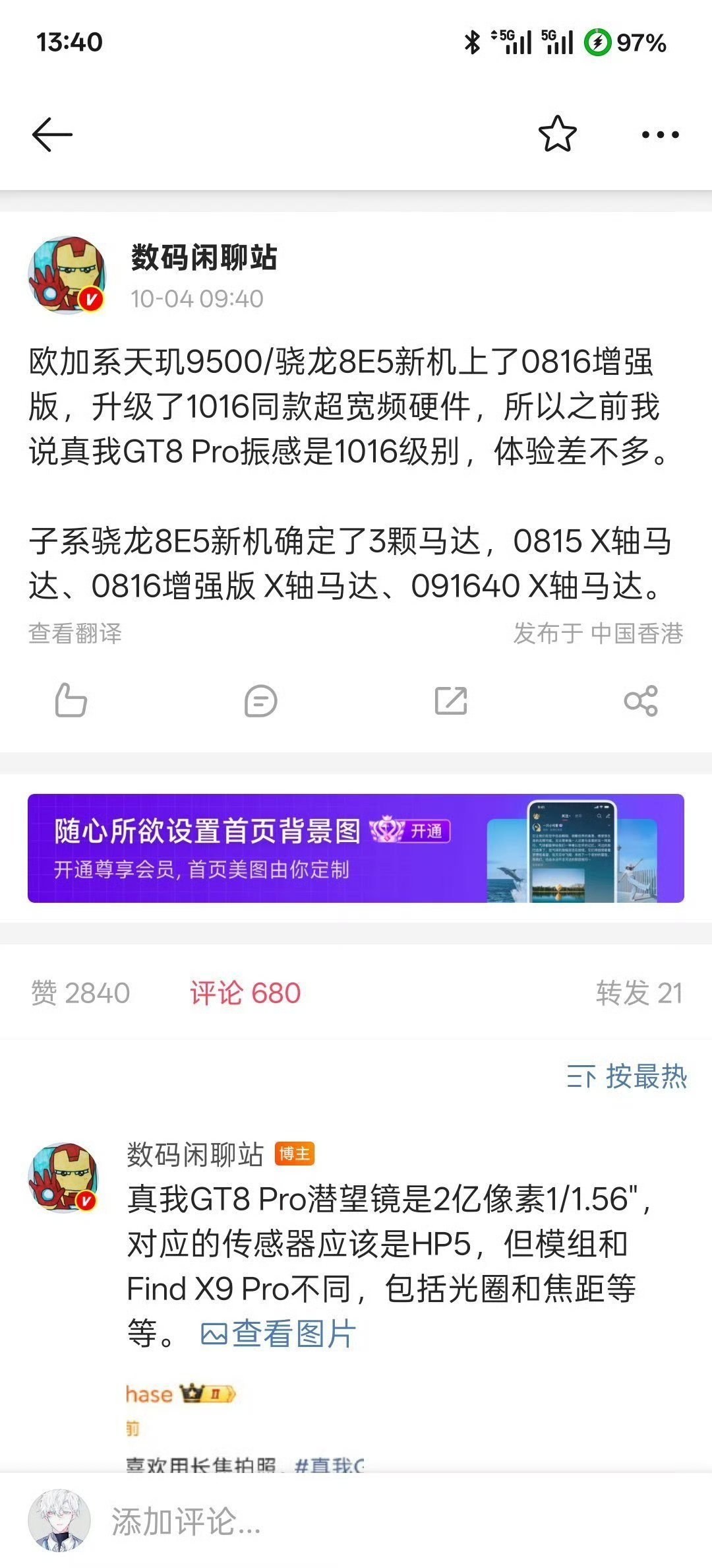 升级 1016 同款超宽频硬件,真我 GT8 Pro 振感是 1016 级别,体验差不多。差不多和1016,和0916马达一样好震动