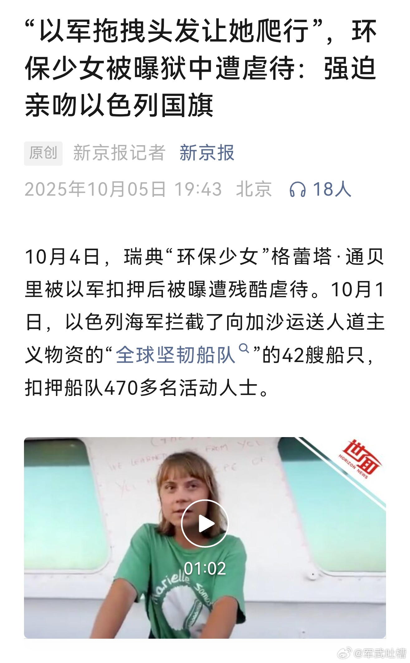 环保少女也被以色列虐待,还被强迫亲吻以色列国旗