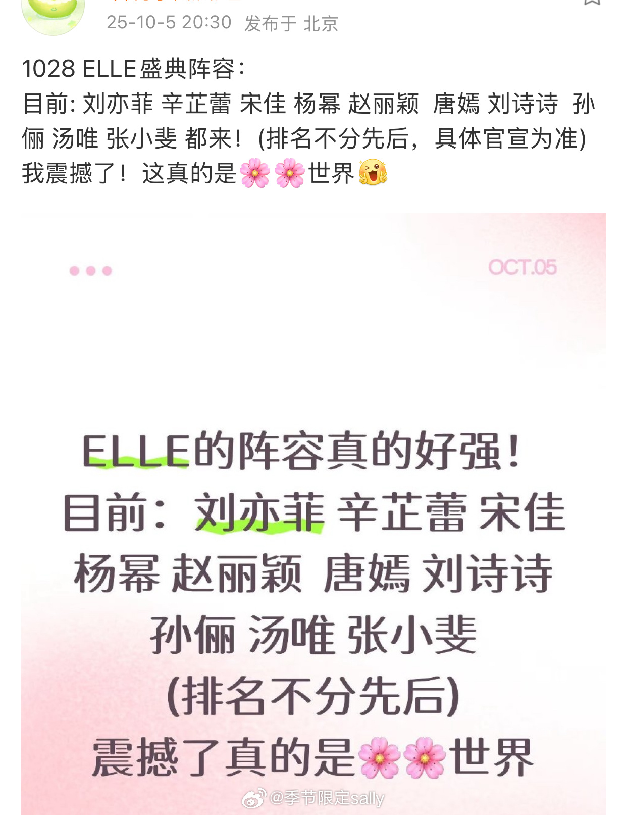 目前: 刘亦菲 辛芷蕾 宋佳 杨幂 赵丽颖 唐嫣 刘诗诗 孙俪 汤唯 张小斐 都来!(排名不分先后,具体官宣为准)