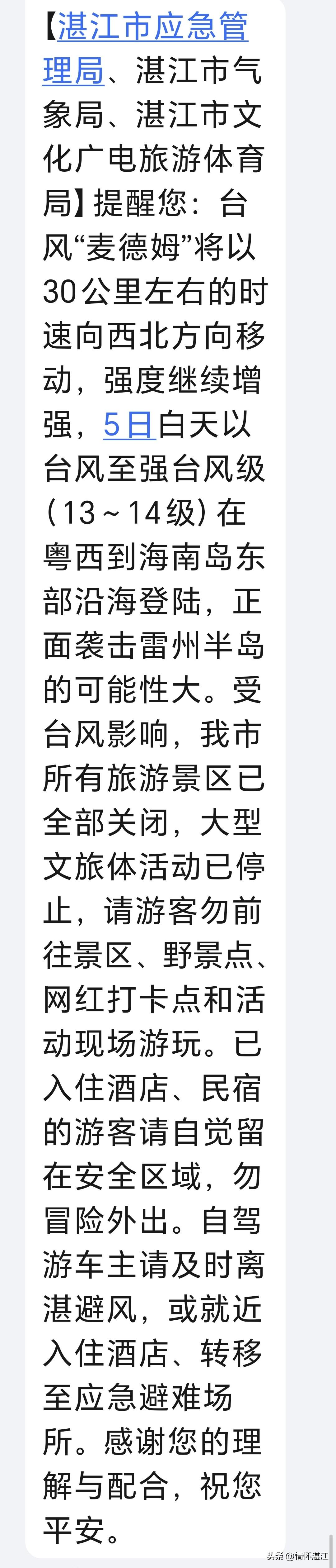 现在来看,湛江市这三个部门联合发出的强台风防御提醒的信息,还是非常准确的,也是非常及时的,为他们点赞👍。